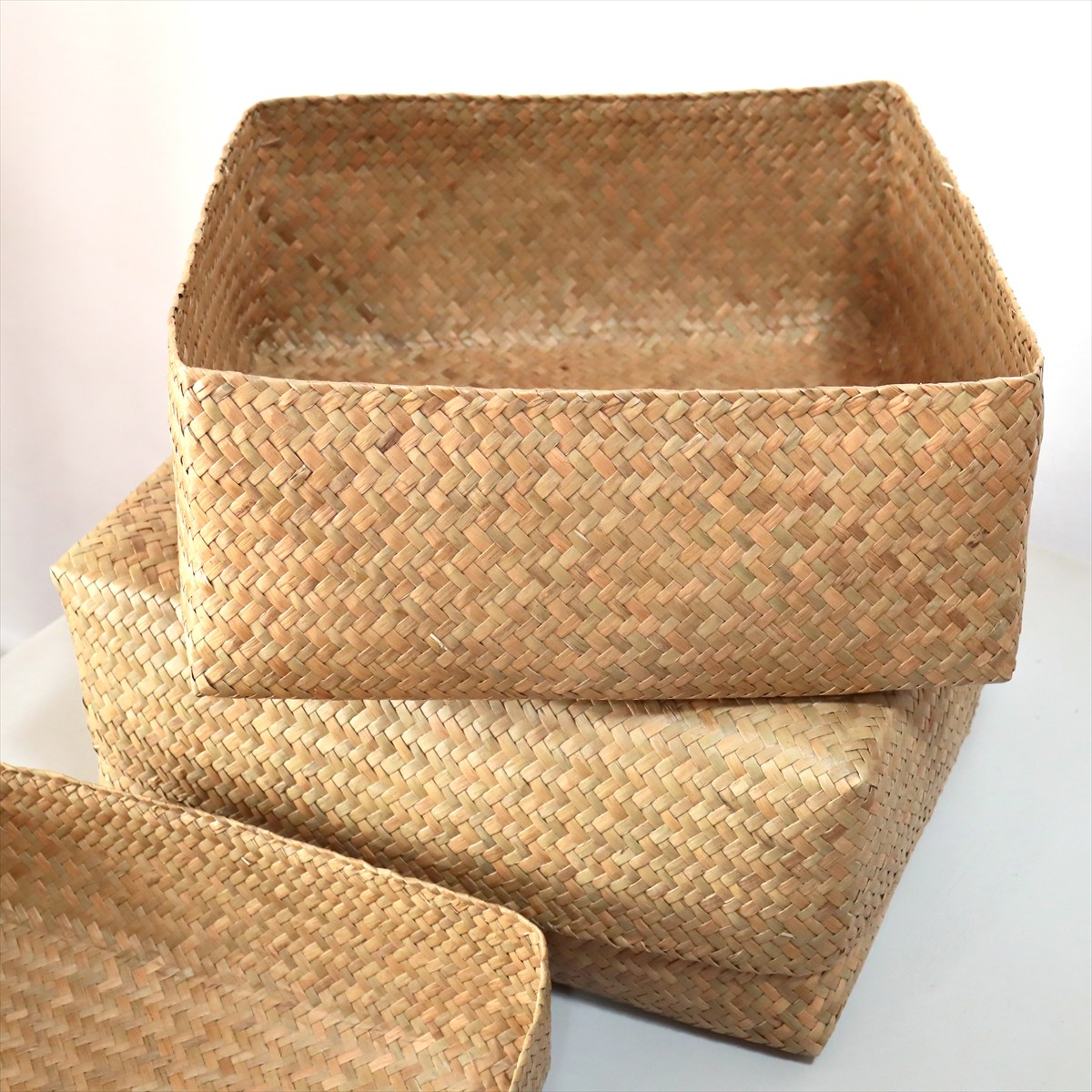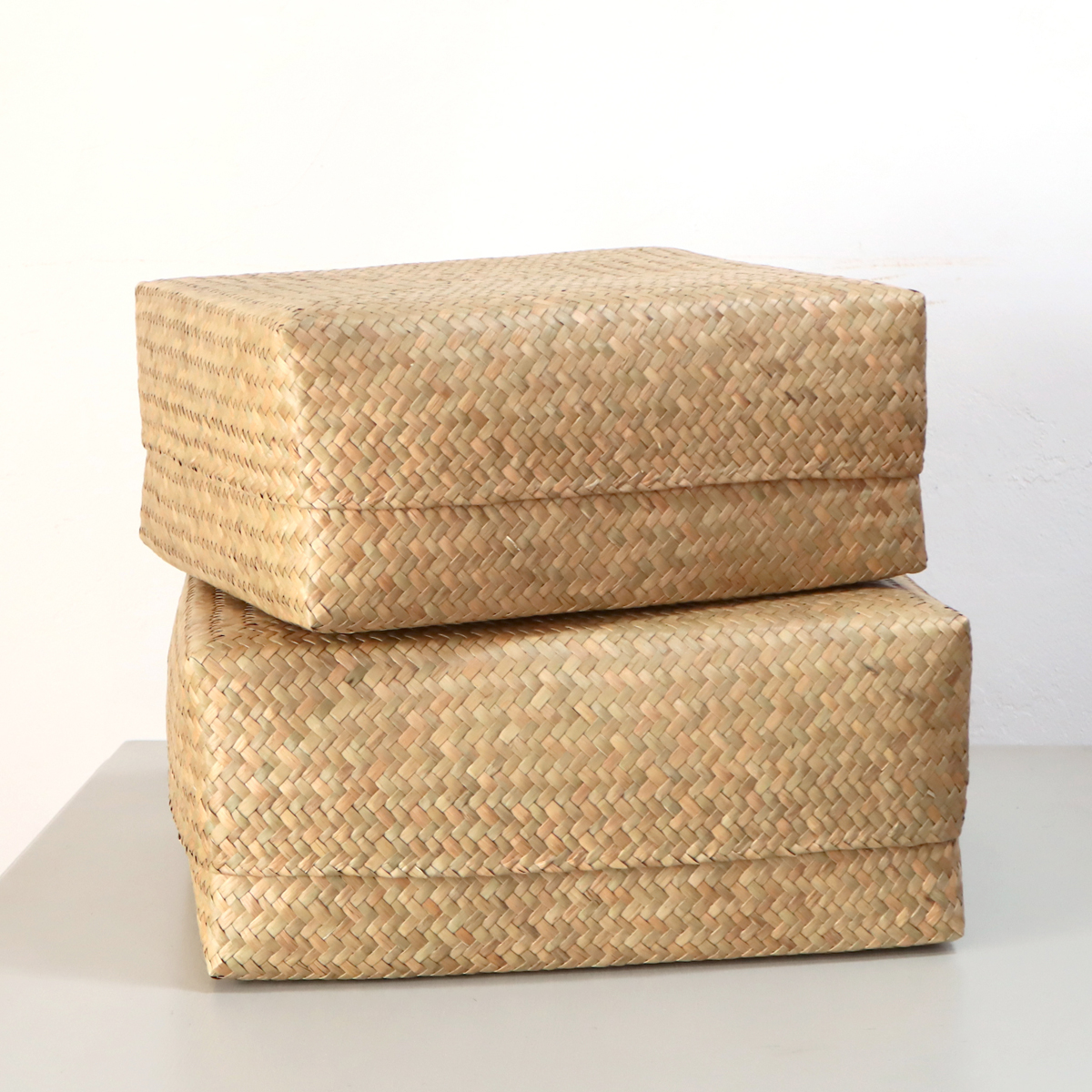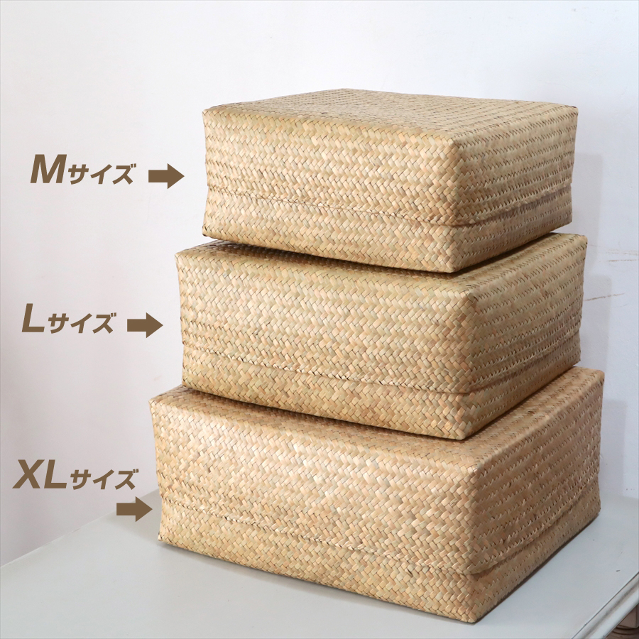 かごバスケット 2点セット M&Lサイズ 入れ子 タイ製 カチュー水草 ふた付 レクタングル 収納ボックス Basket Asian straw basket, Thailand