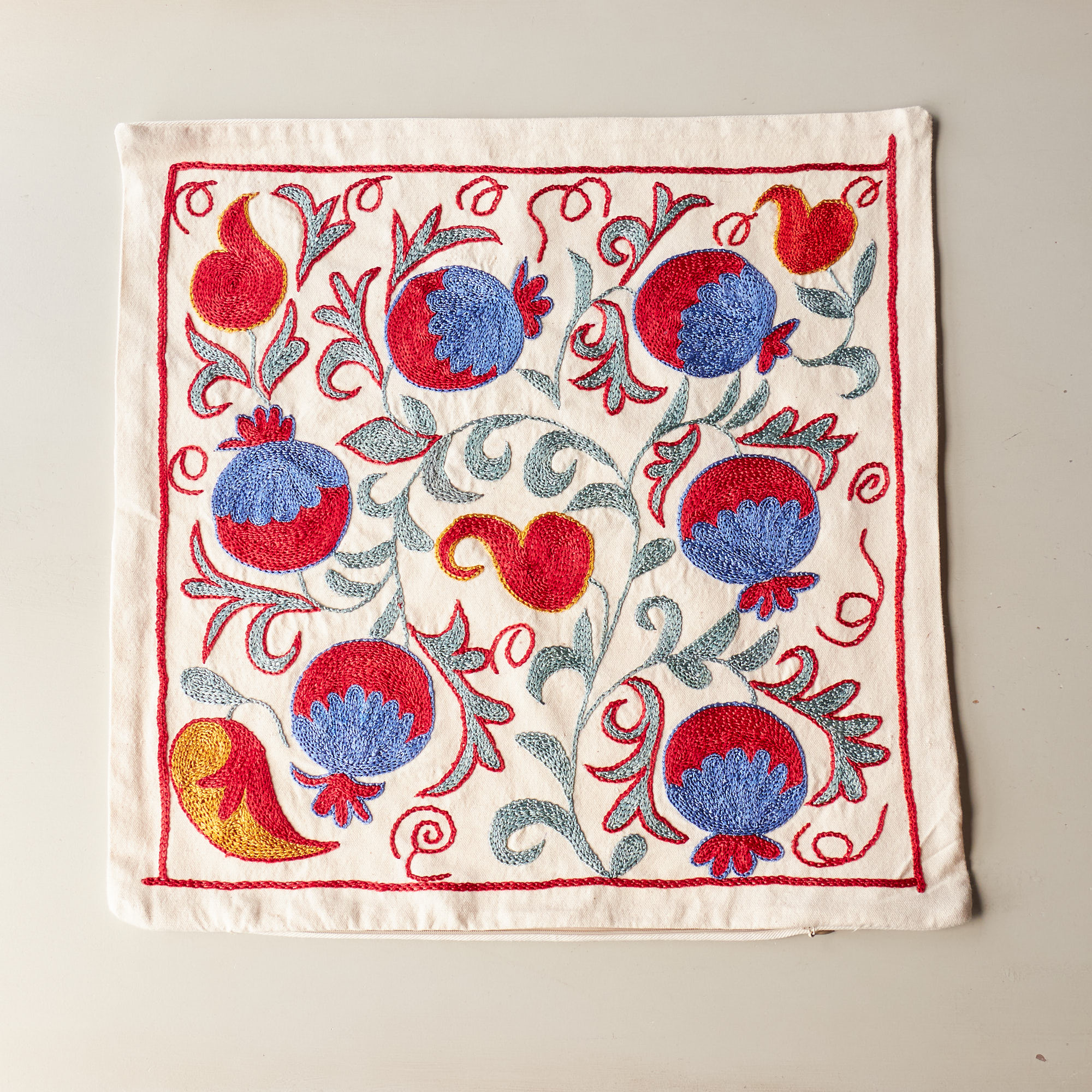 - スザンニ刺繍 クッションカバー47×47cm ウズベキスタン Suzani スザニ ザクロの実