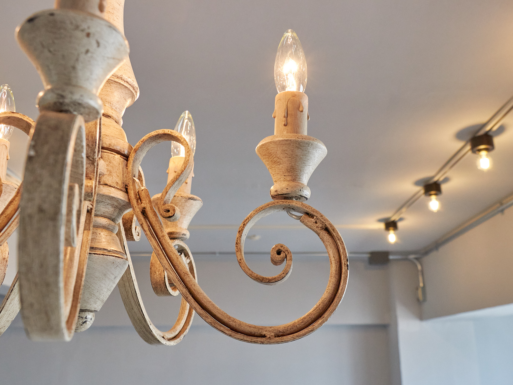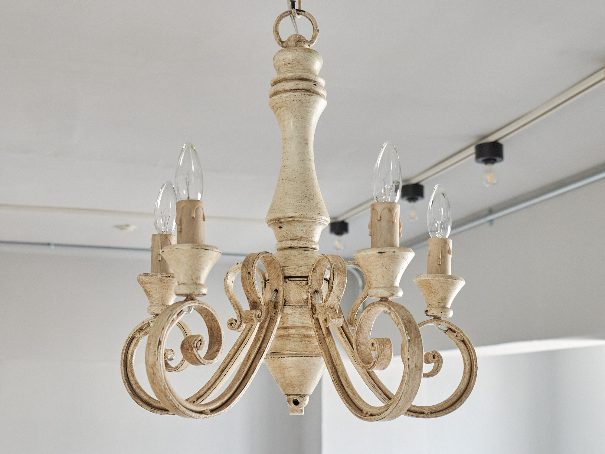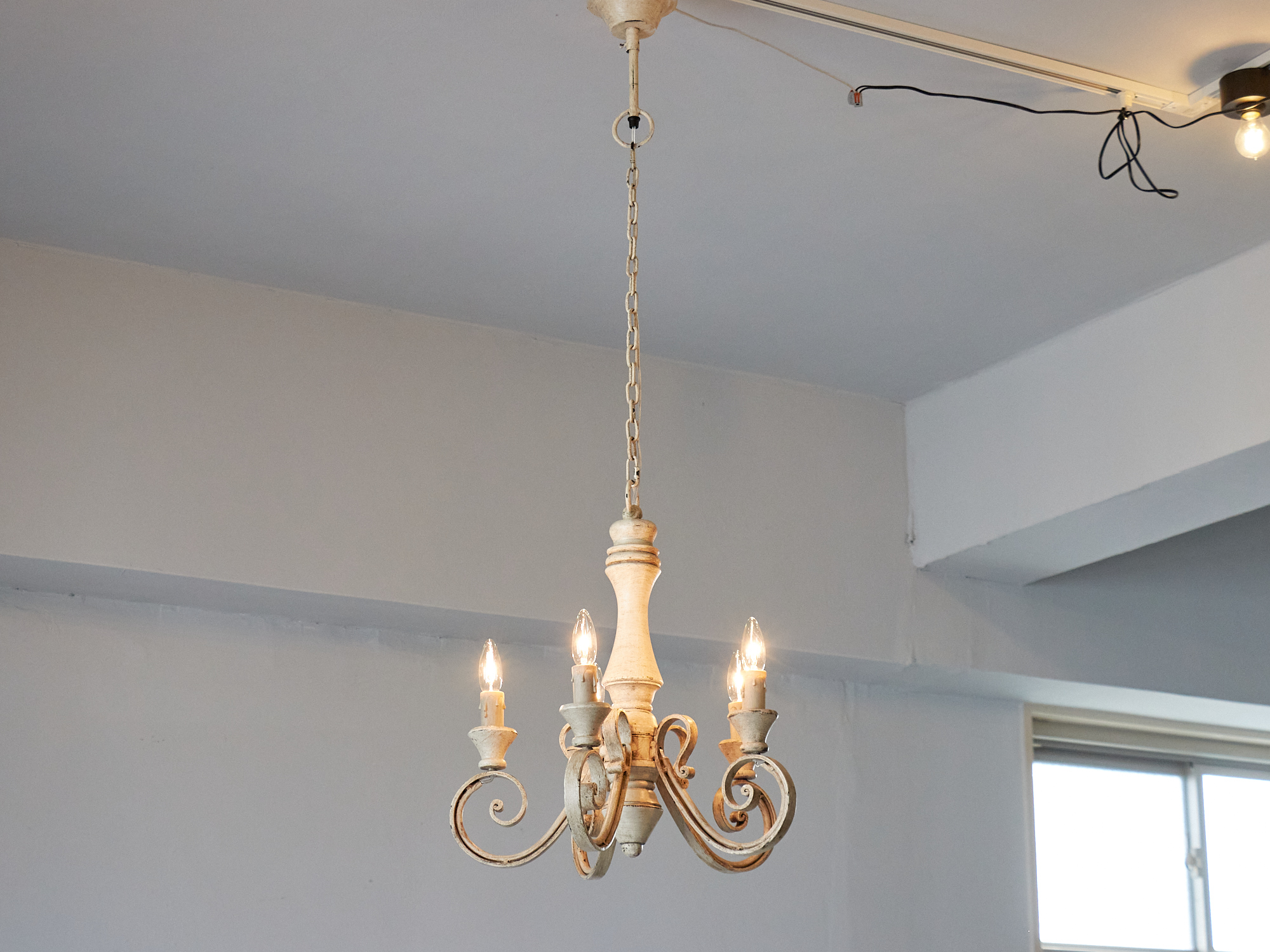 - アイアン/ウッド シャンデリア 5灯 キャンドル CASTLE AGE ホワイト アンティーク