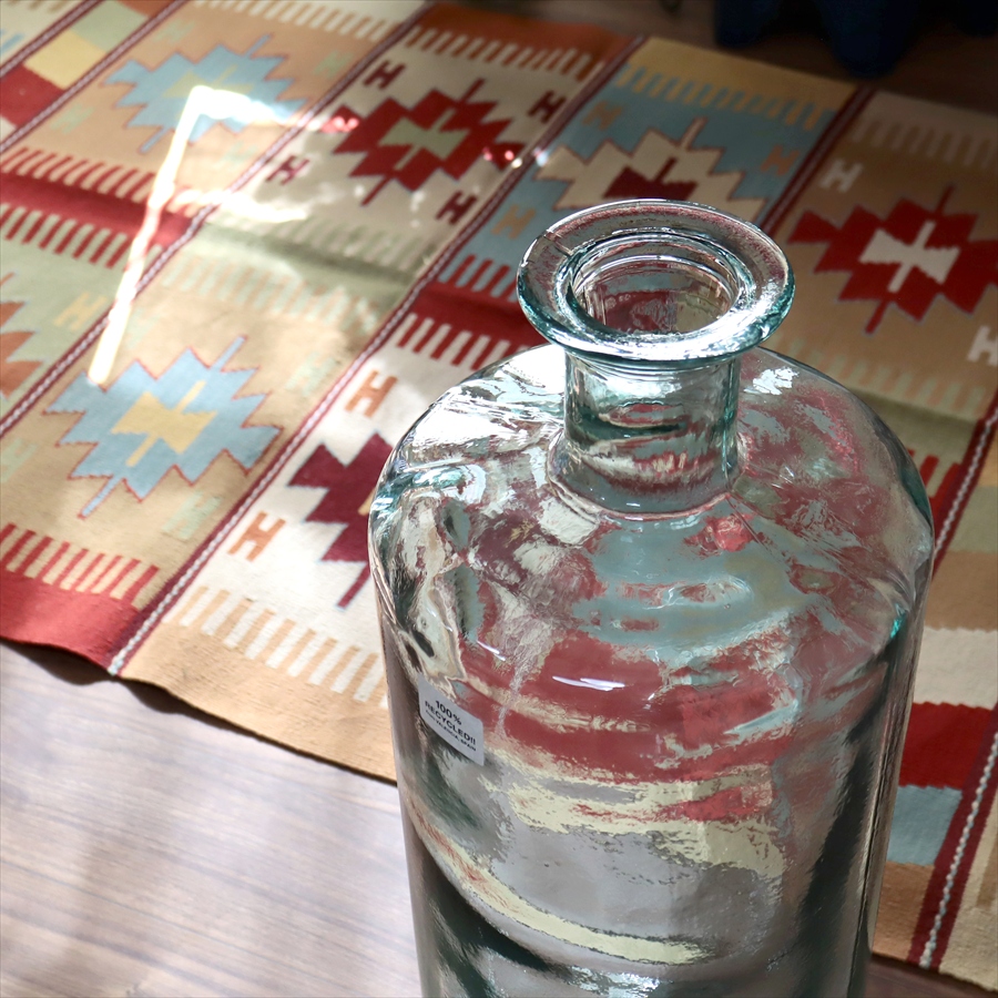 リサイクルガラス フラワーベース 高さ75cm 直径25cm スペイン製 花瓶 インテリアボトル DIECISIETE