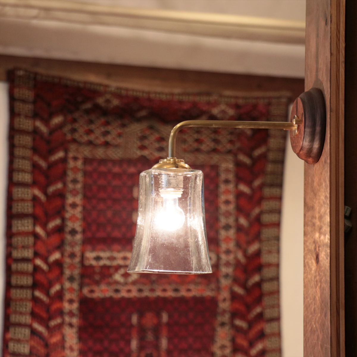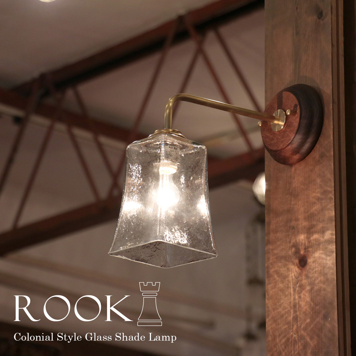 - ウォールランプ ガラスシェード/真鍮&ウッドコロニアル ルーク クリア 要電源工事