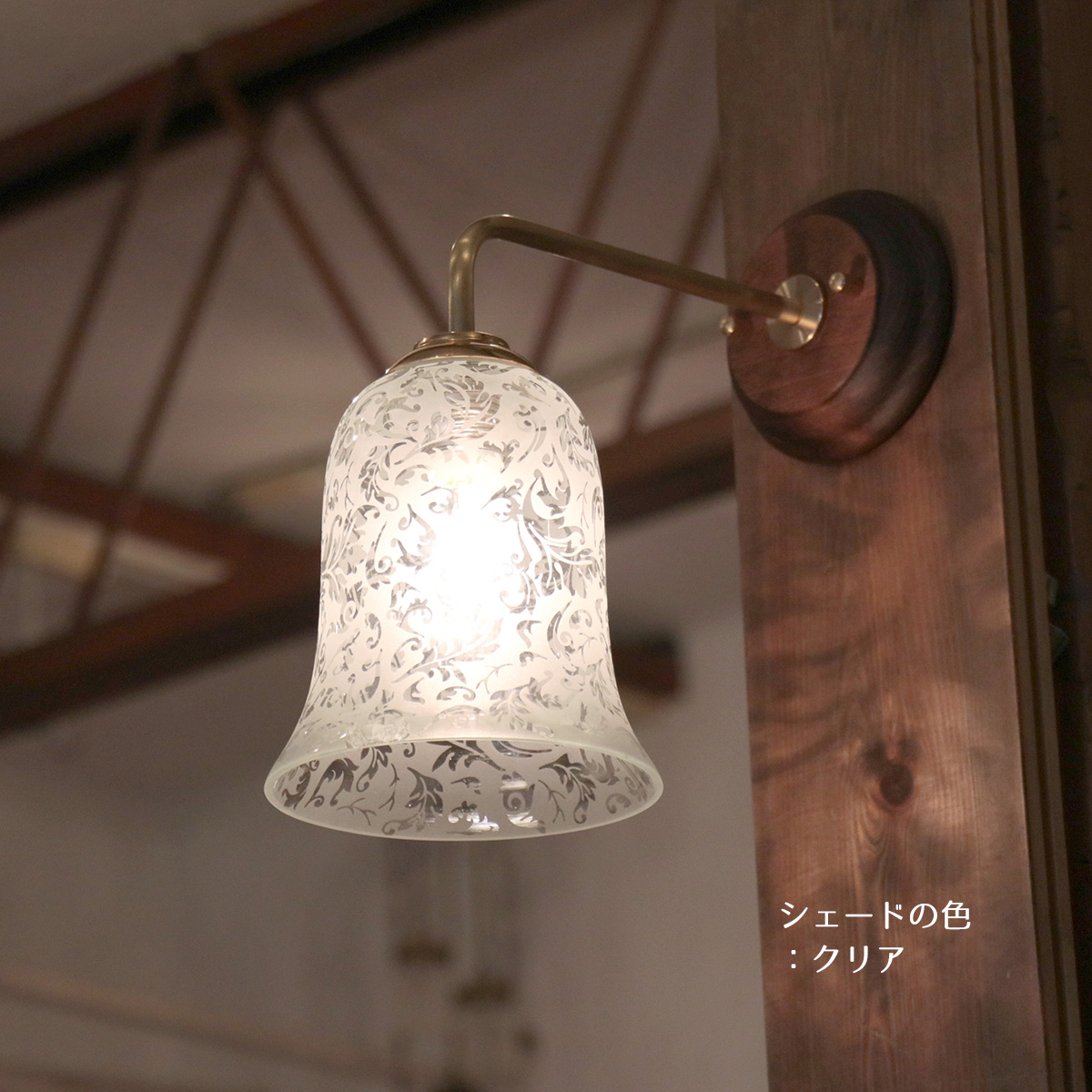 - ウォールランプ ガラスシェード/真鍮&ウッドコロニアル ブルーベル クリア 要電源工事