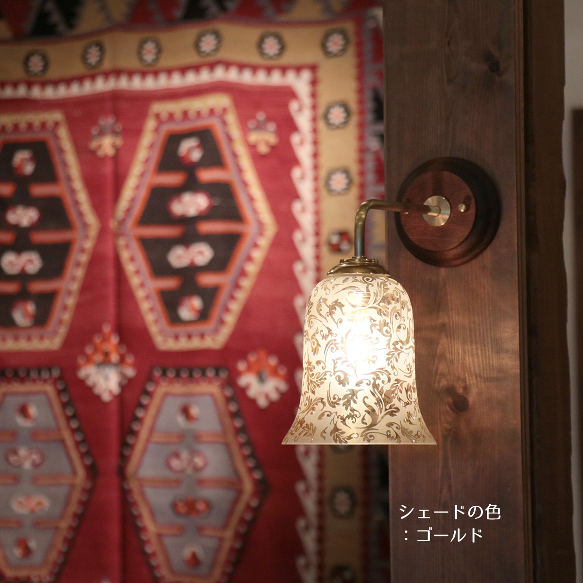 ウォールランプ ガラスシェード/真鍮&ウッドコロニアル ブルーベル クリア 要電源工事