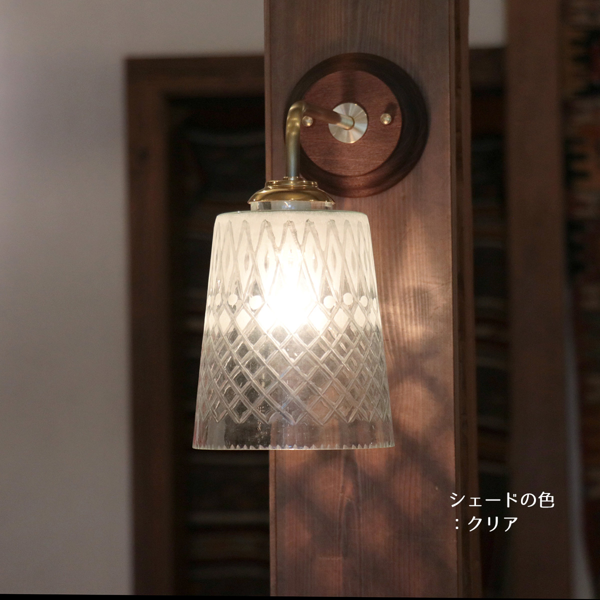 - ウォールランプ ガラスシェード/真鍮&ウッドコロニアル カリス クリア要電源工事