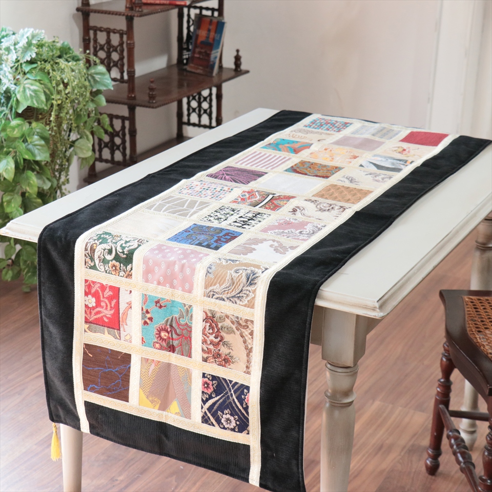 テーブルランナー モザイクパッチワーク 142x50cmサイズ シュニール素材