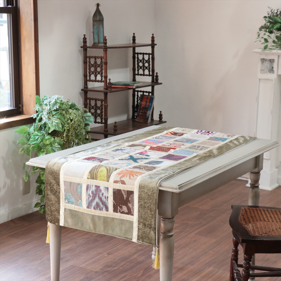 テーブルランナー モザイクパッチワーク 142x50cmサイズ シュニール素材