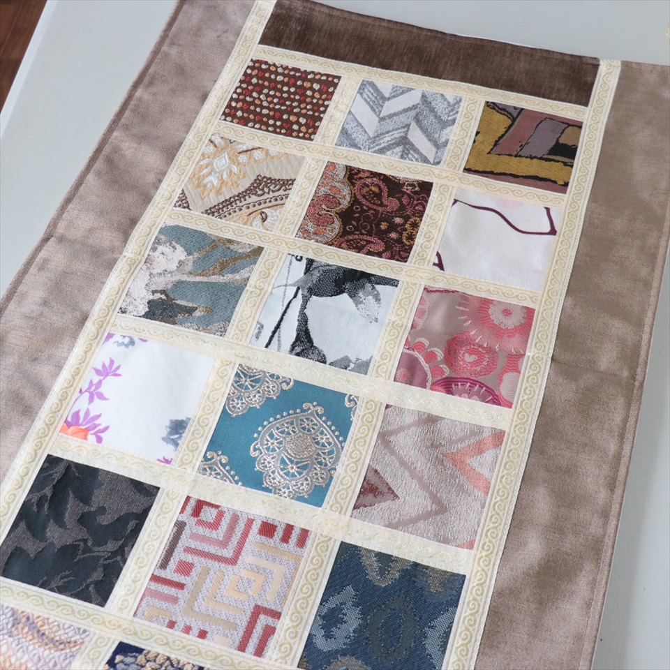 テーブルランナー モザイクパッチワーク 142x50cmサイズ シュニール素材