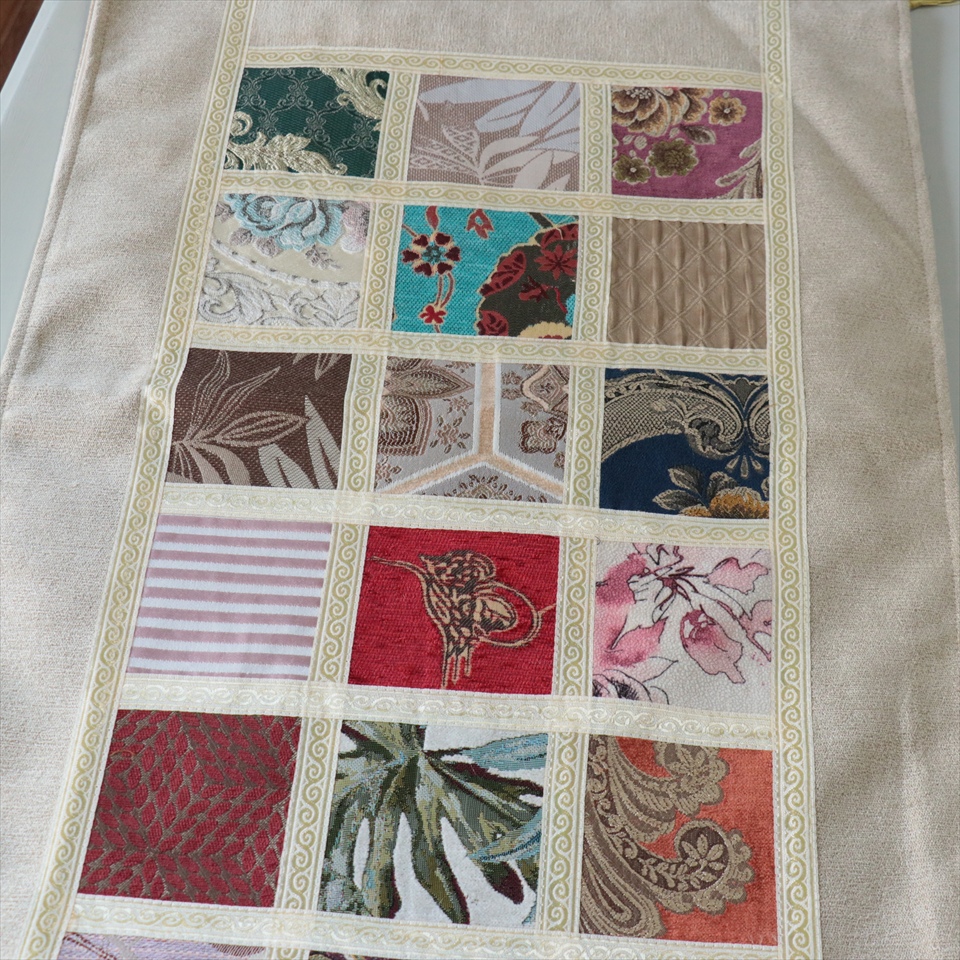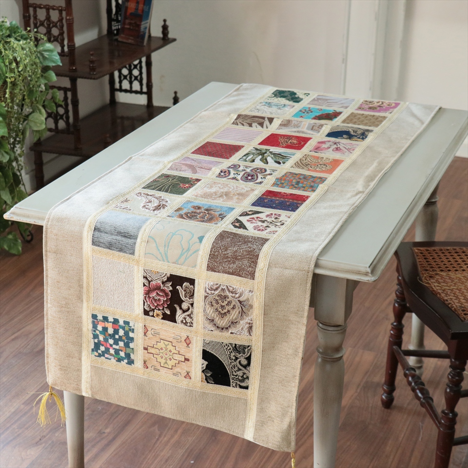 テーブルランナー モザイクパッチワーク 142x50cmサイズ シュニール素材