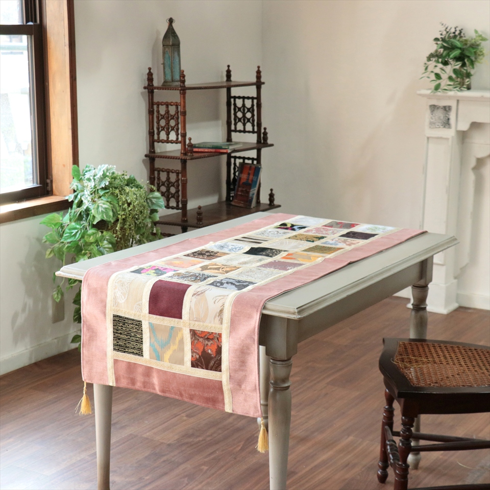 - テーブルランナー モザイクパッチワーク 142x50cmサイズ シュニール素材