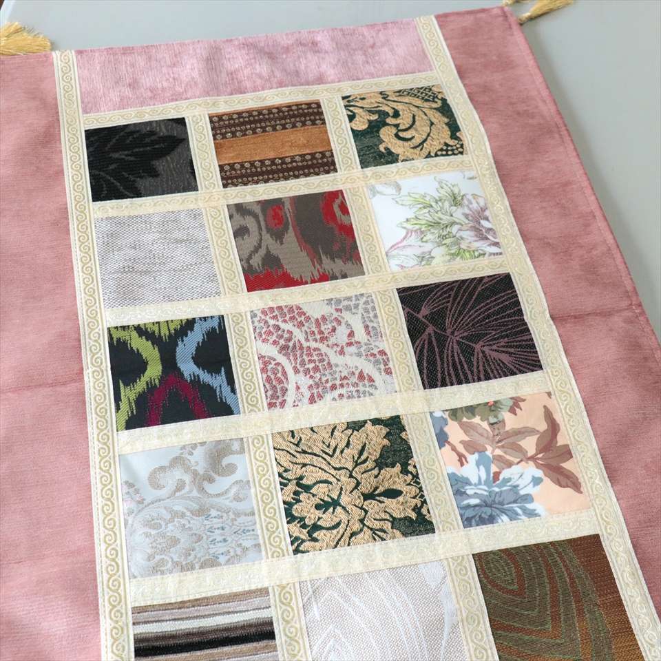 テーブルランナー モザイクパッチワーク 142x50cmサイズ シュニール素材