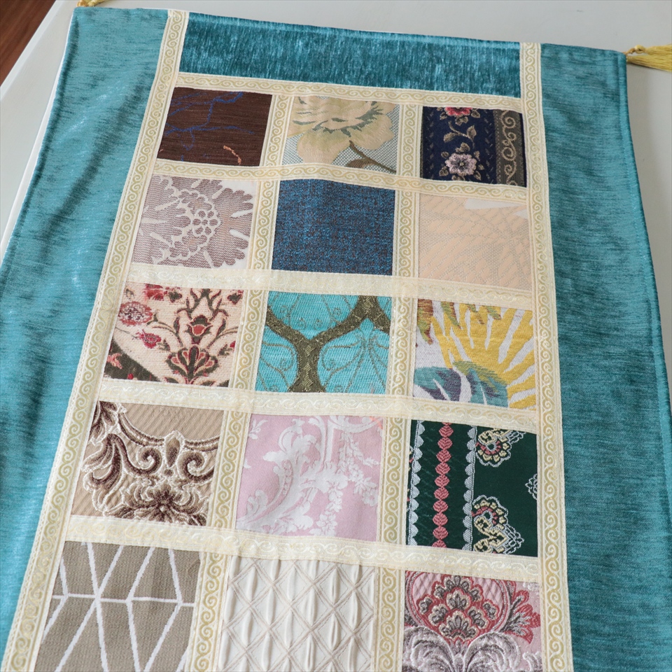 テーブルランナー モザイクパッチワーク 142x50cmサイズ シュニール素材