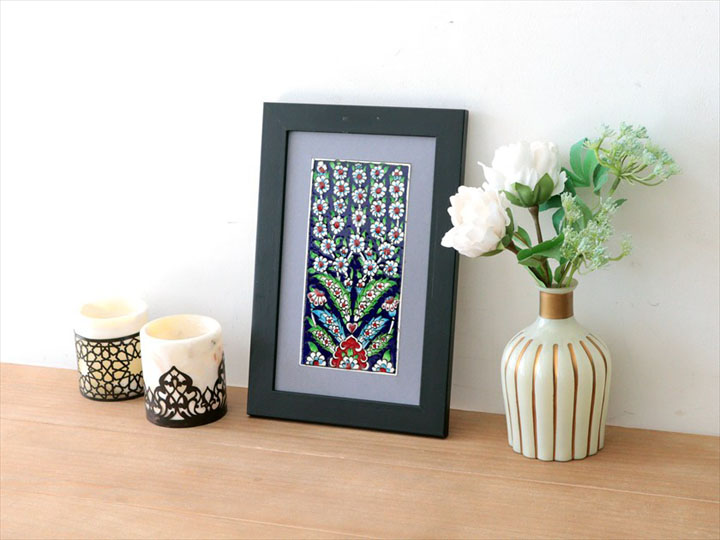 手書きタイル トルコ陶器 ミニタイル1枚額 H30×W20×D1.5cm プラムツリー Turkish Hand Paint Tile