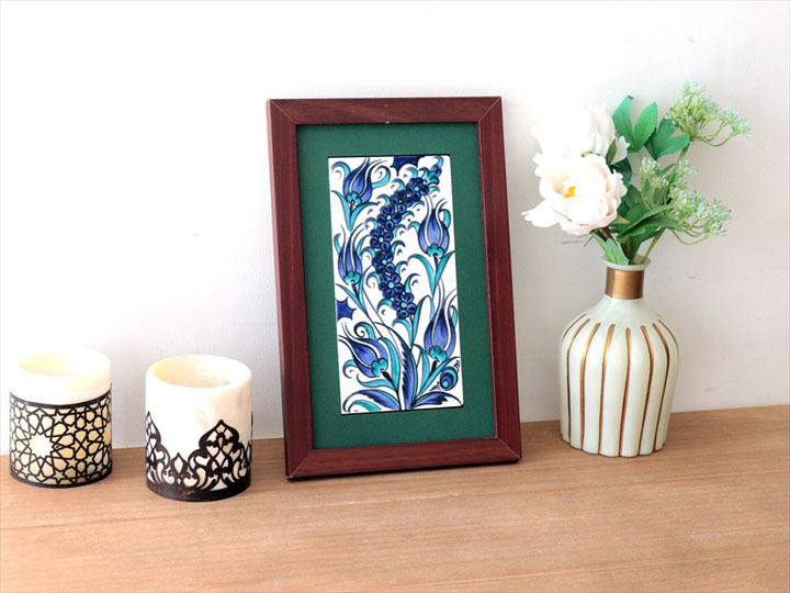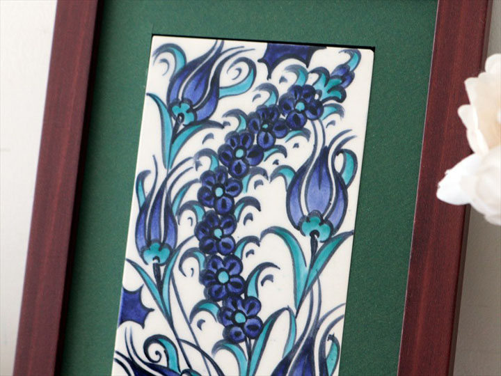 手書きタイル トルコ陶器 ミニタイル1枚額 H29×W19×D1.5cm ブルーチューリップ Turkish Hand Paint Tilex