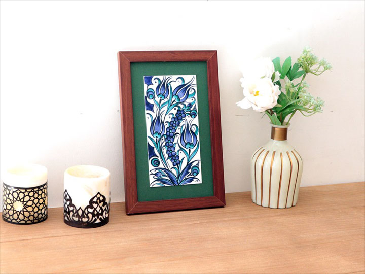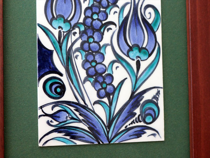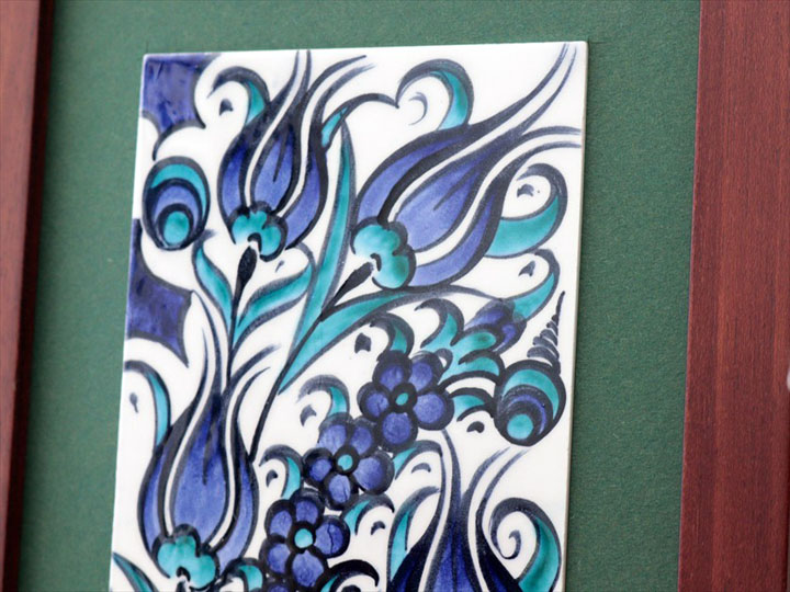手書きタイル トルコ陶器 ミニタイル1枚額 H29×W19×D1.5cm ブルーチューリップ Turkish Hand Paint Tilex