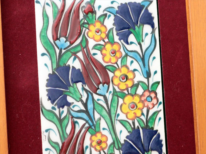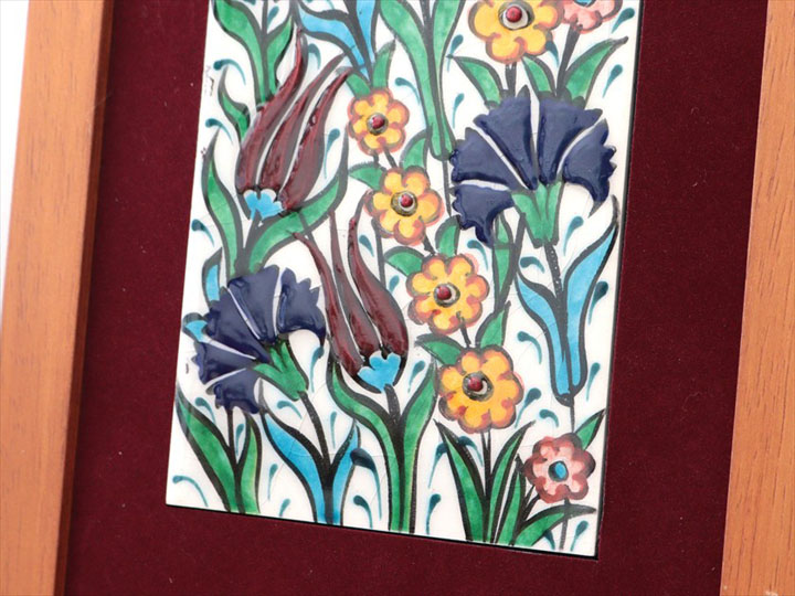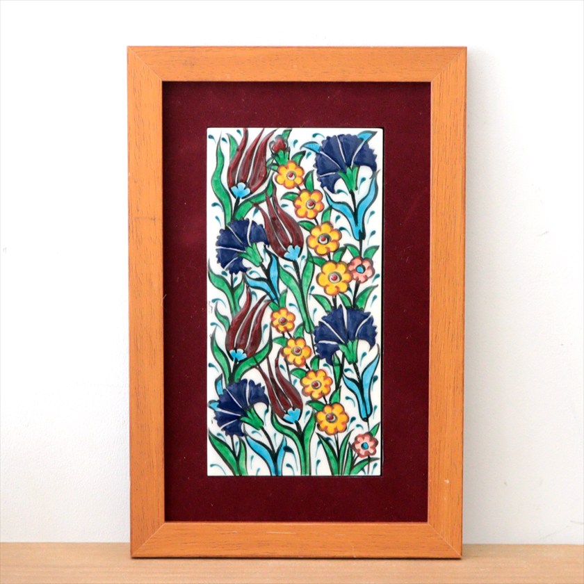 手書きタイル トルコ陶器 ミニタイル1枚額 H29×W19×D1.5cm チューリップ&カーネーション Turkish Hand Paint Tile
