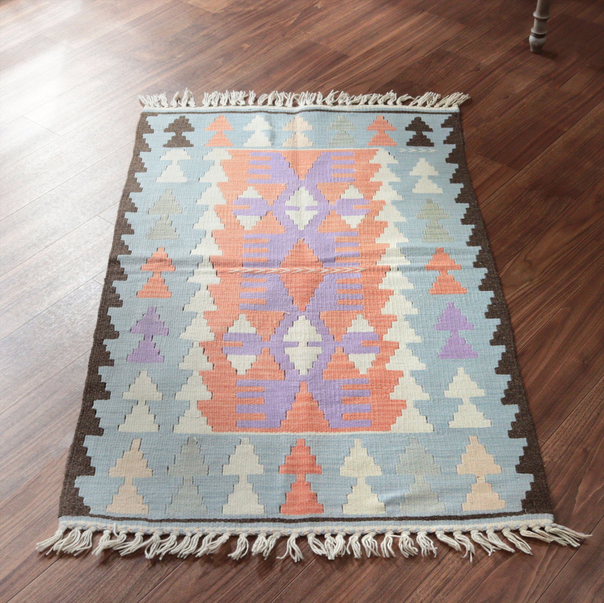 - カイセリ産手織りキリム127×79cm パステルカラー トルコの手織りラグ
