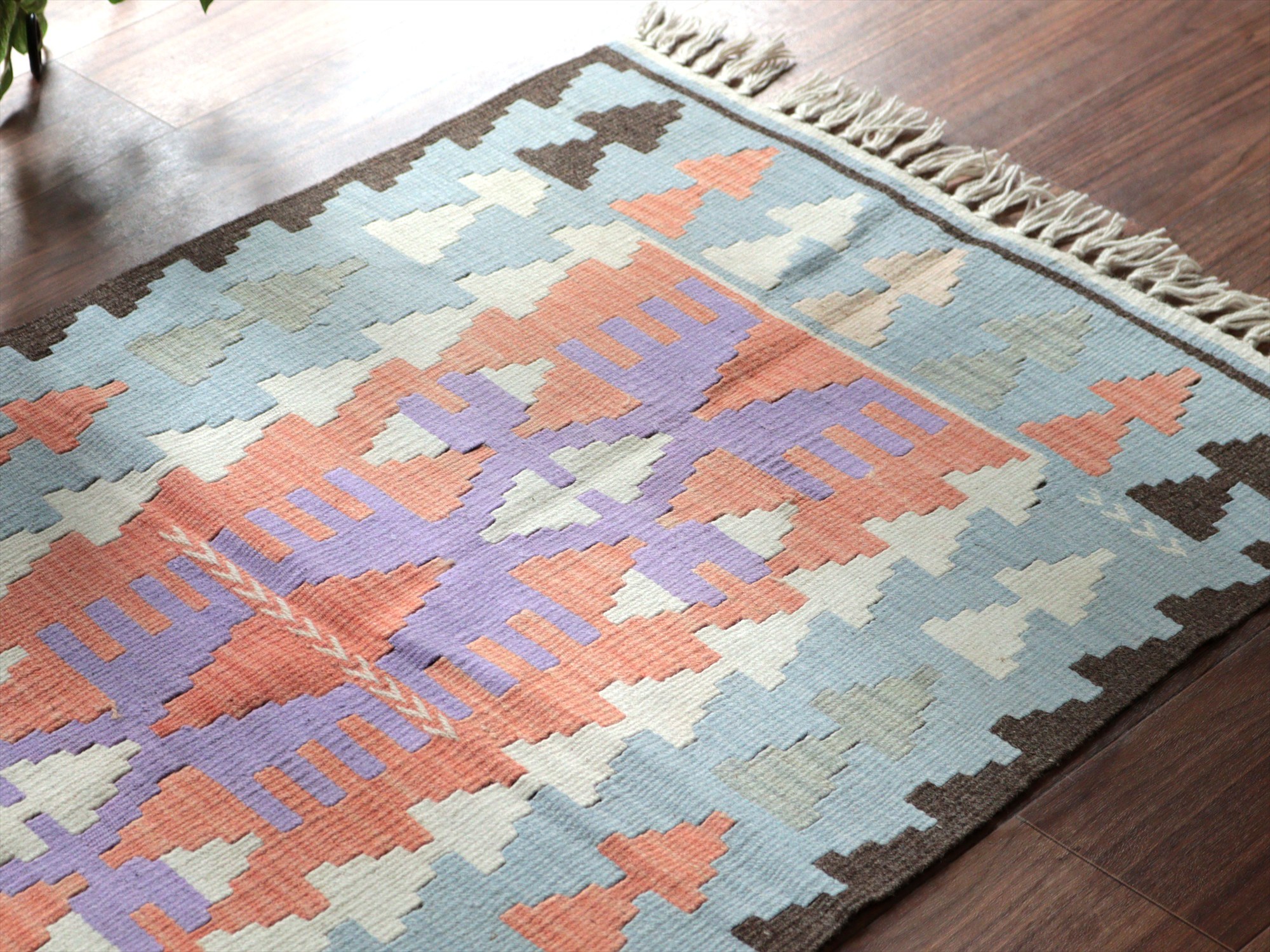 カイセリ産手織りキリム127×79cm パステルカラー トルコの手織りラグ