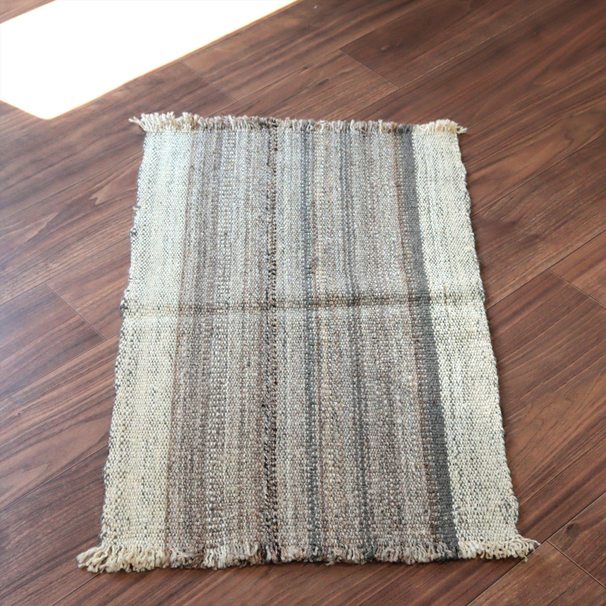 トルコの手織りキリム カルス81×51cm ブラウン&アイボリー ストライプ