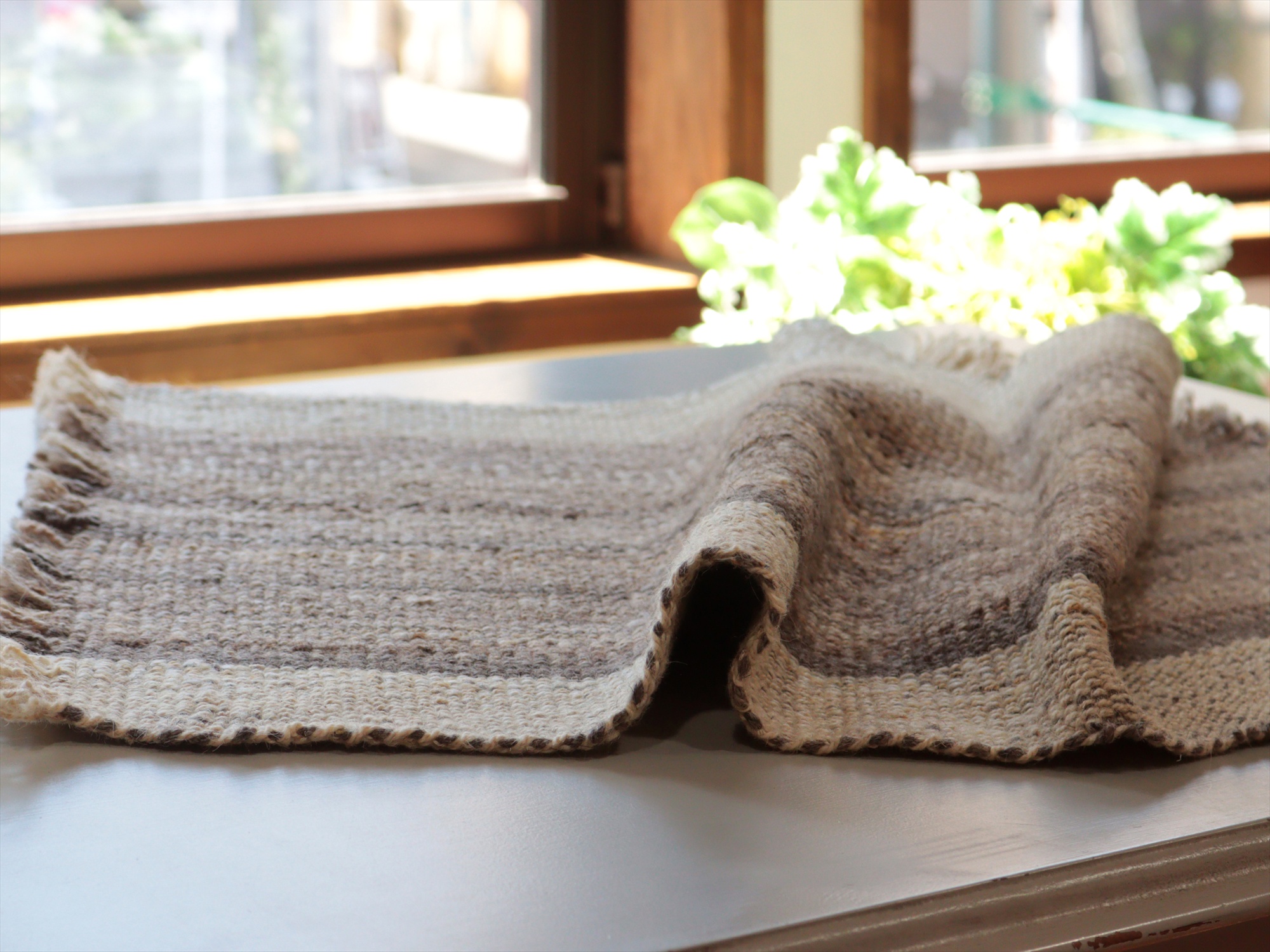太いウールの糸を使い織られていて、ぽてっとした厚みがあり重量感があります。