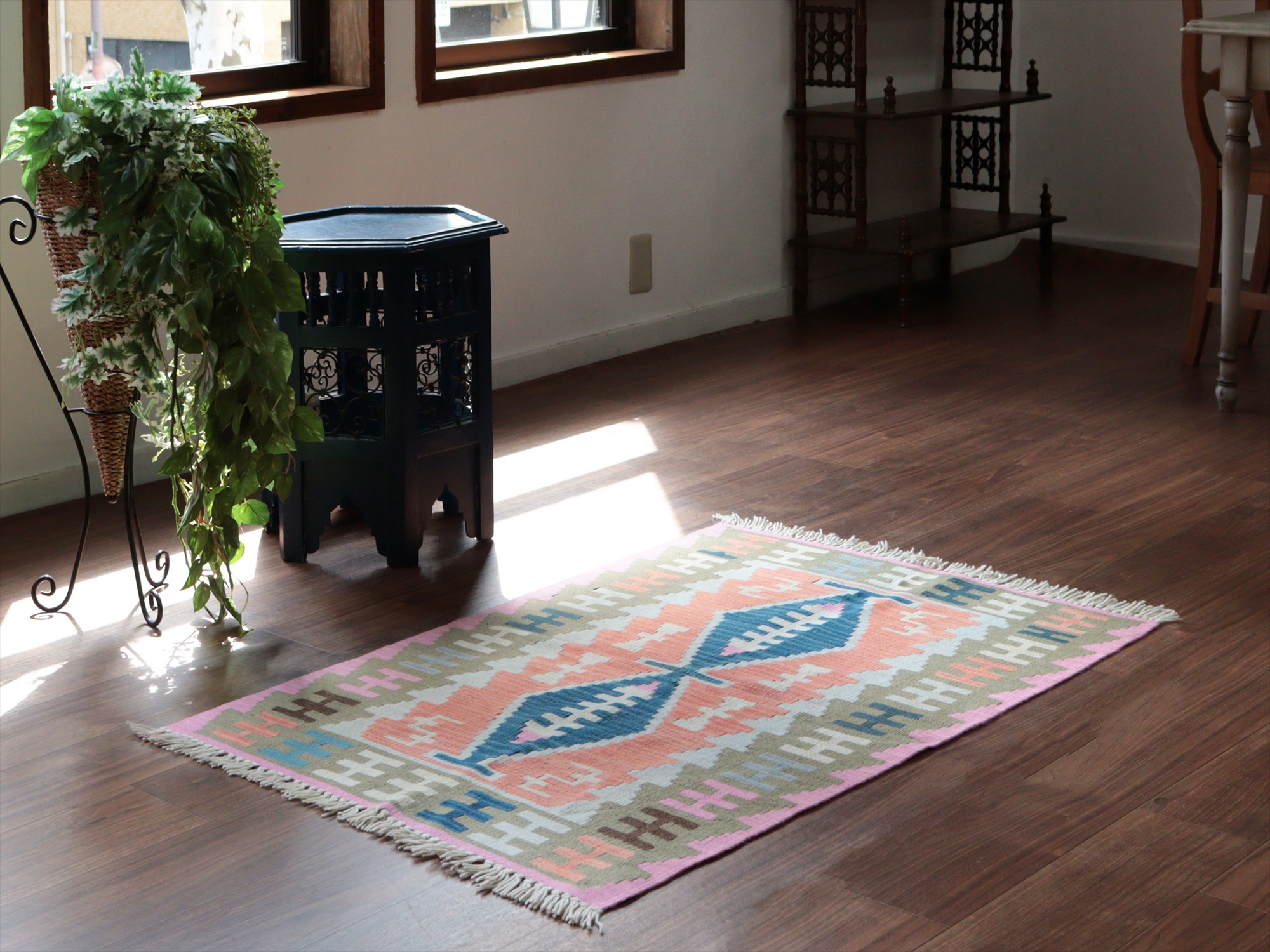 - カイセリ産手織りキリム116×76cm パステルカラー トルコの手織りラグ