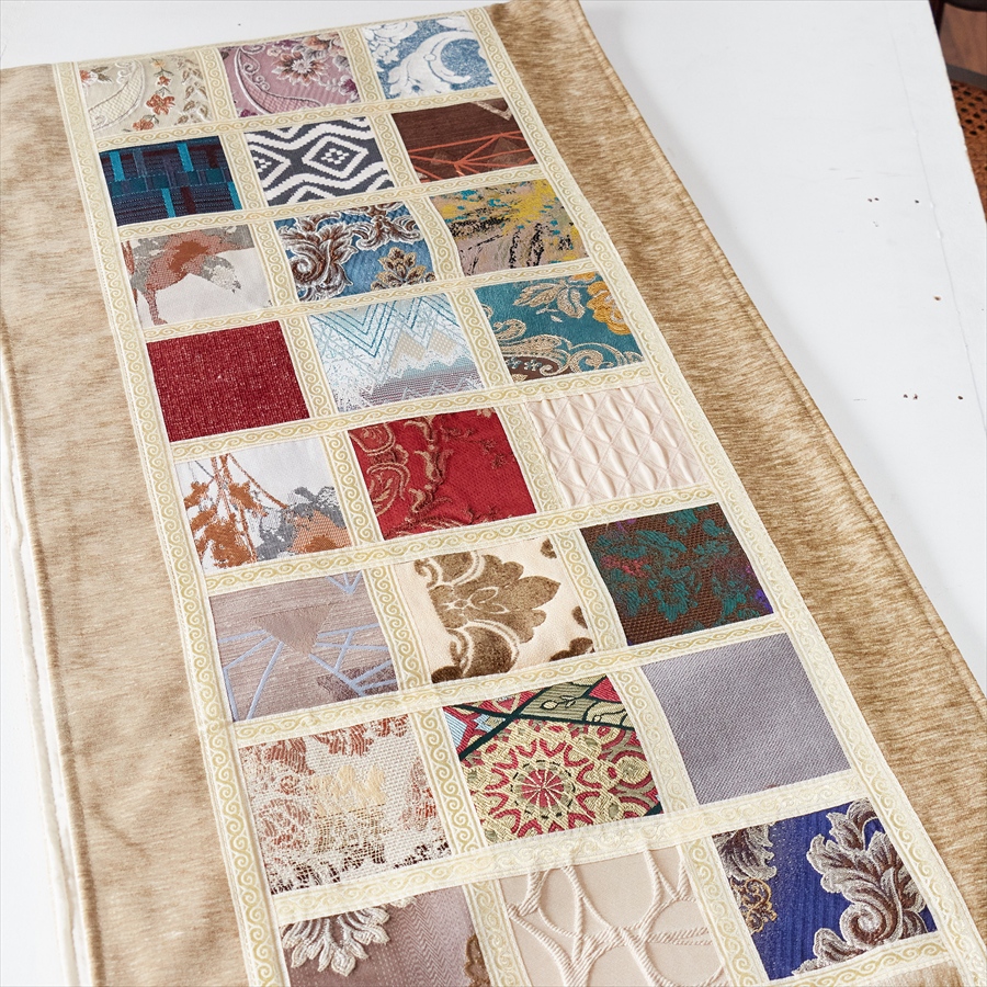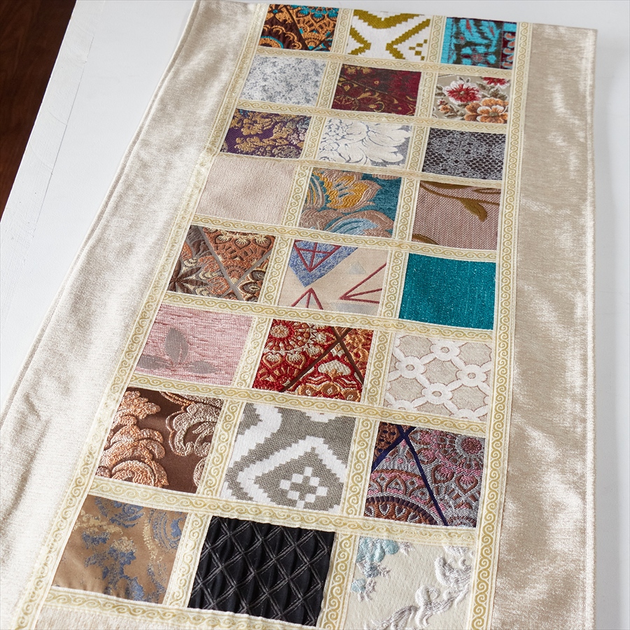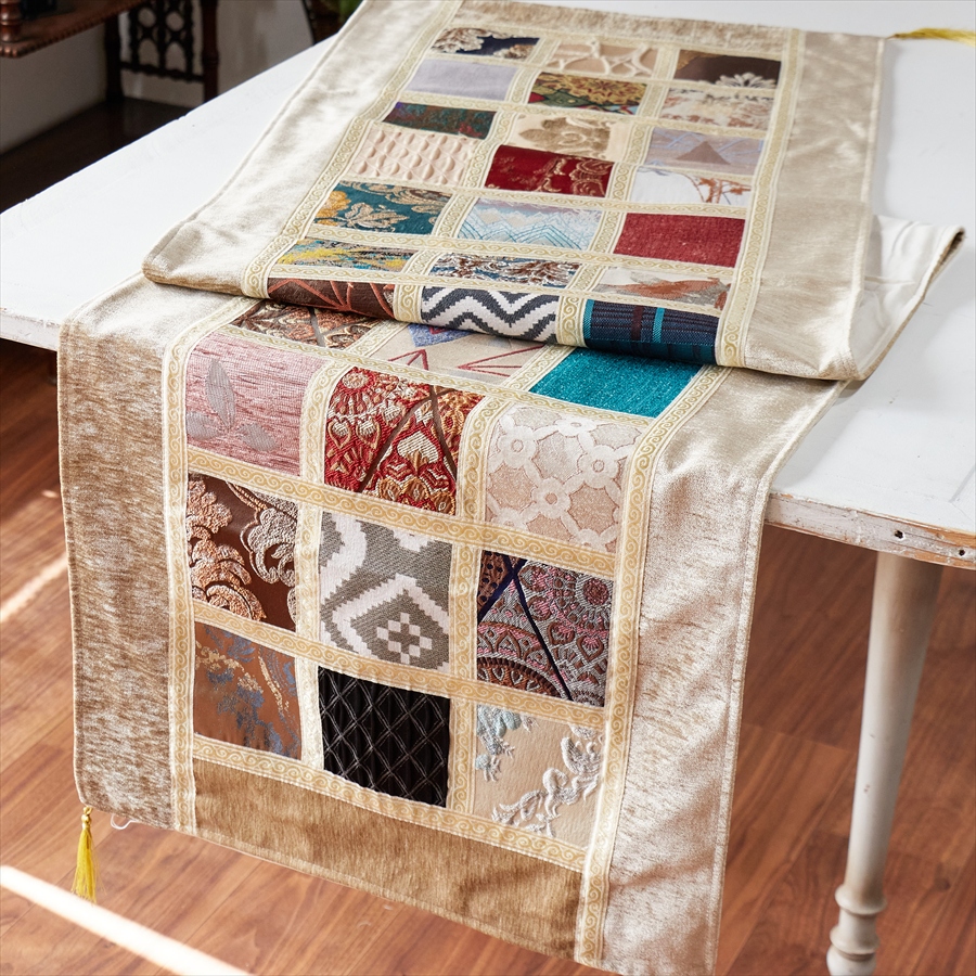 5. テーブルランナー モザイクパッチワーク 200x50cmサイズ シュニール素材