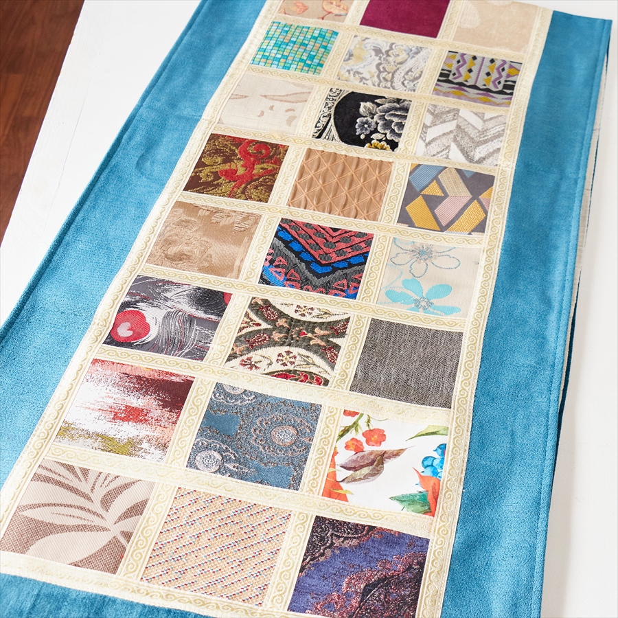5. テーブルランナー モザイクパッチワーク 200x50cmサイズ シュニール素材