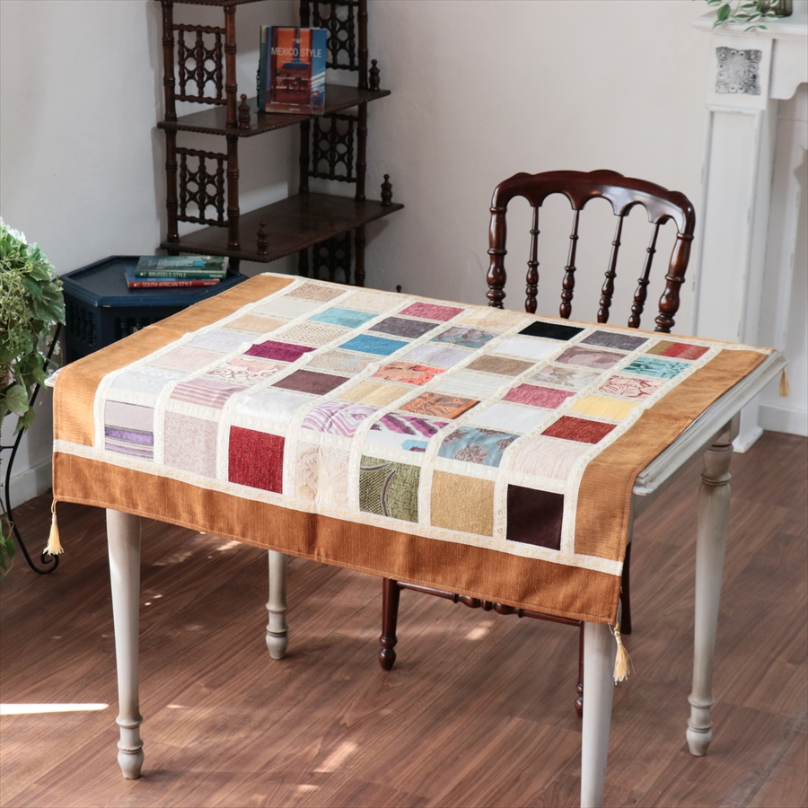 マルチカバー モザイクパッチワーク 95x95cmサイズ シュニール素材