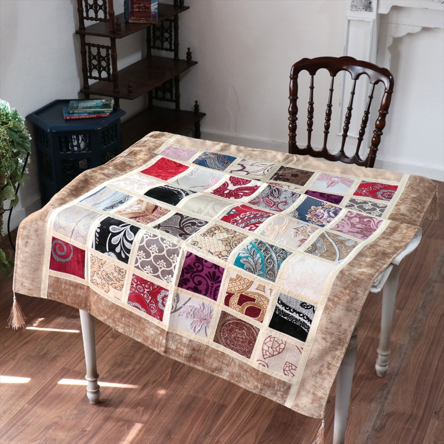 マルチカバー モザイクパッチワーク 150x98cmサイズ シュニール素材
