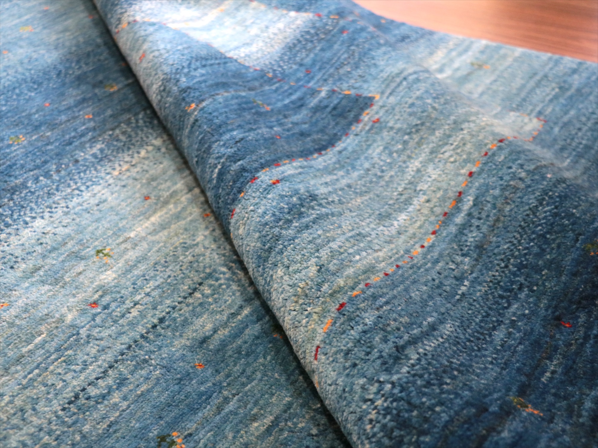 6. ギャッベ/ロリアタシュ LoriAtash 262x194cm ブルーグラデーション 最上級の細かな織り