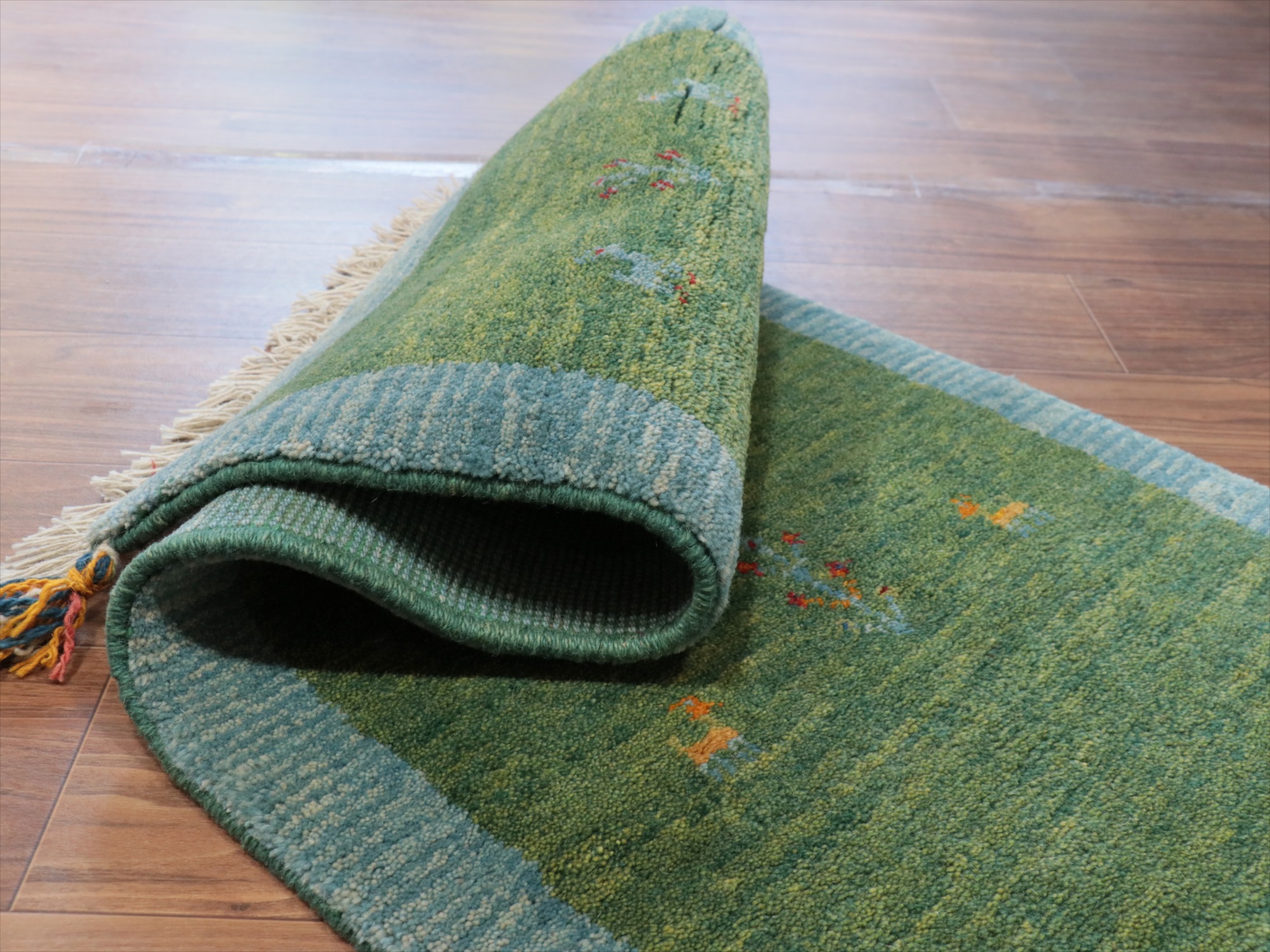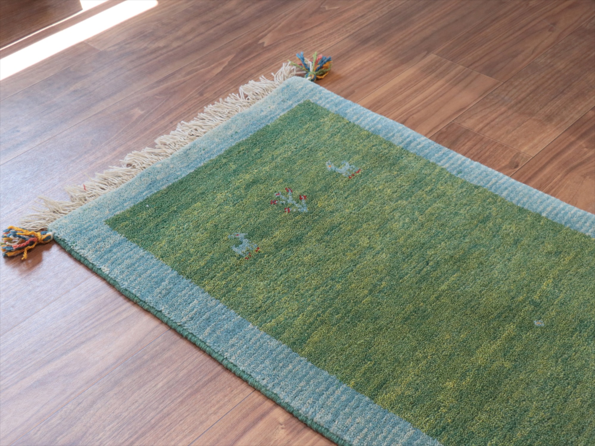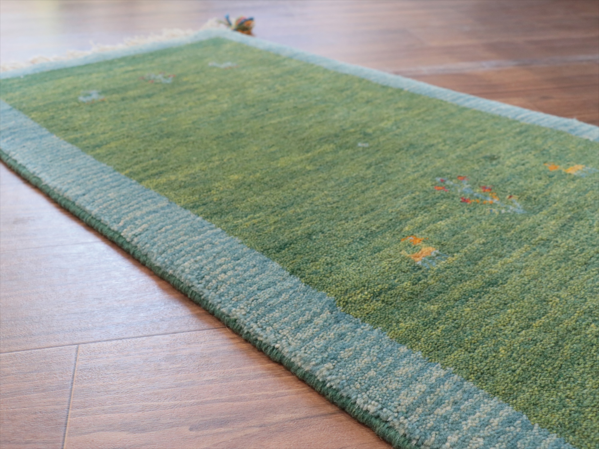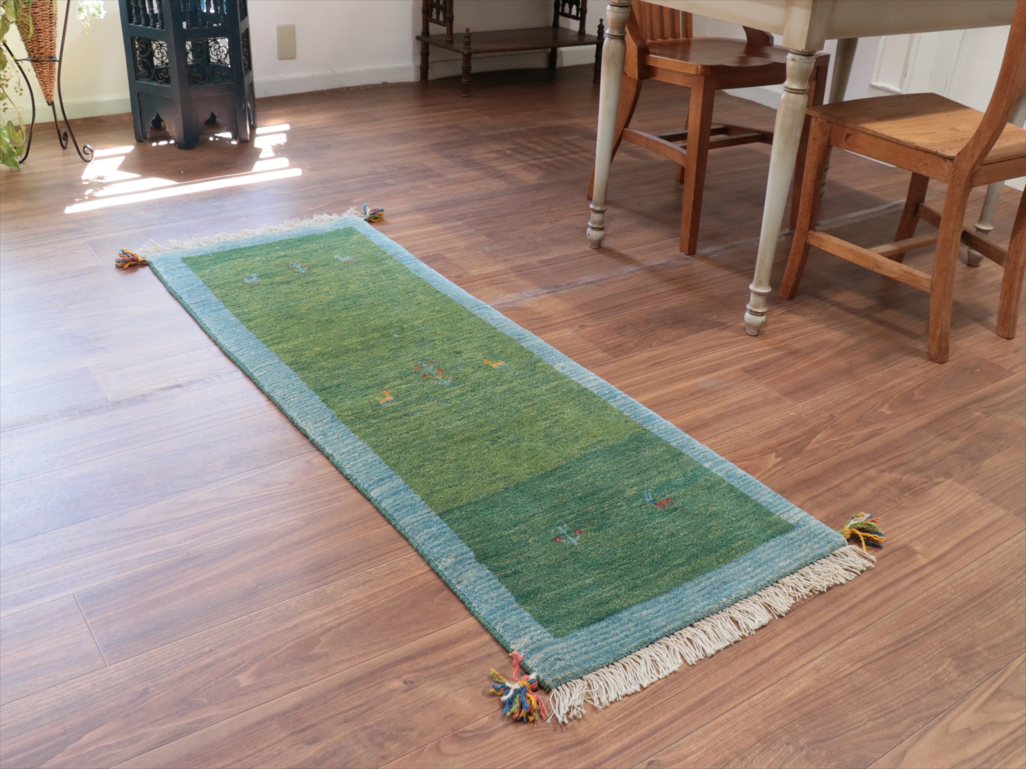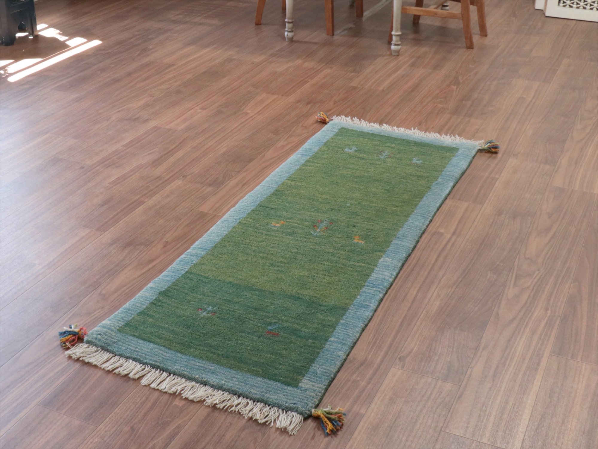 ギャッベ プリミティブで素朴なデザイン 150x53cm グリーン ランナー