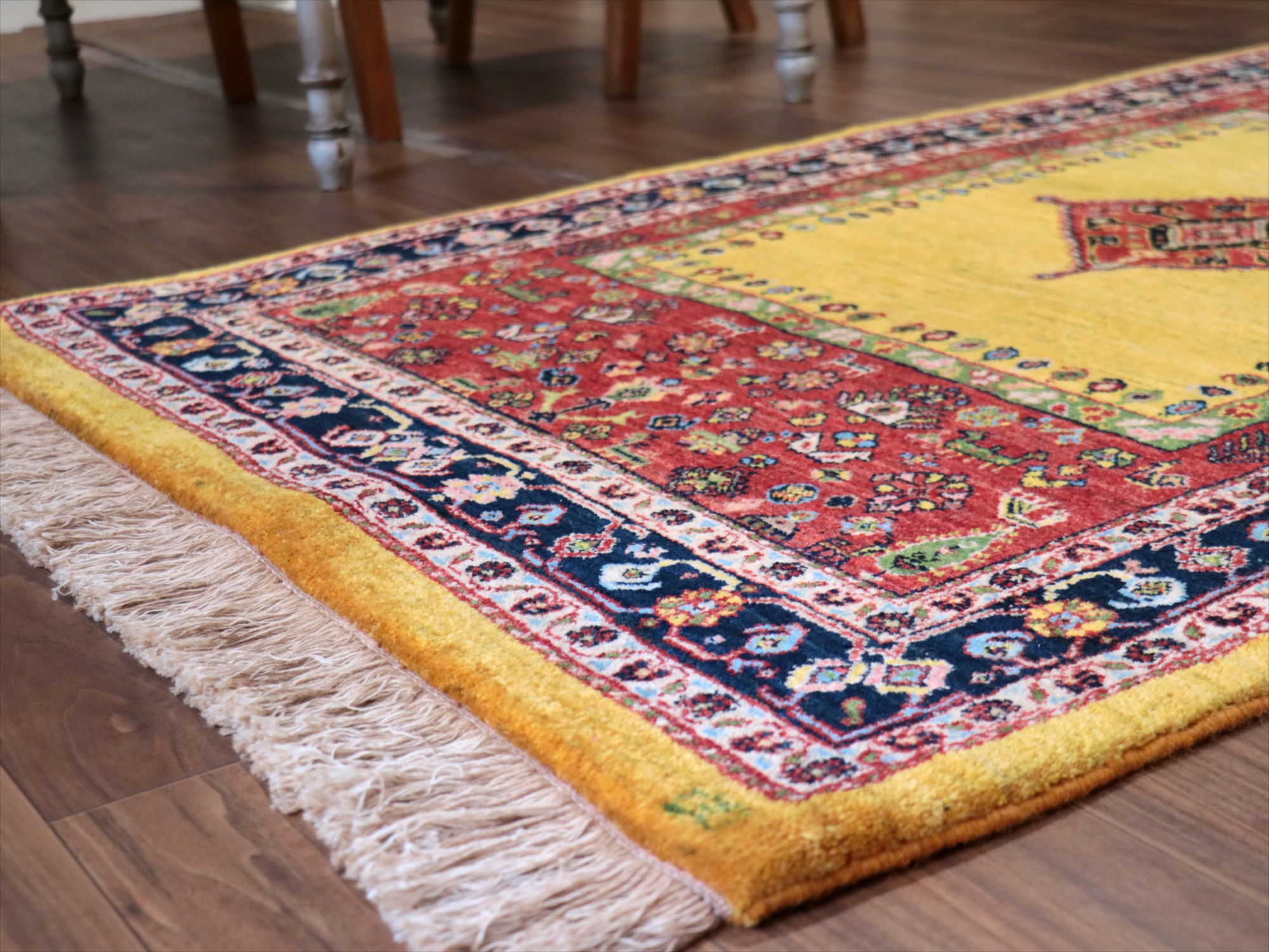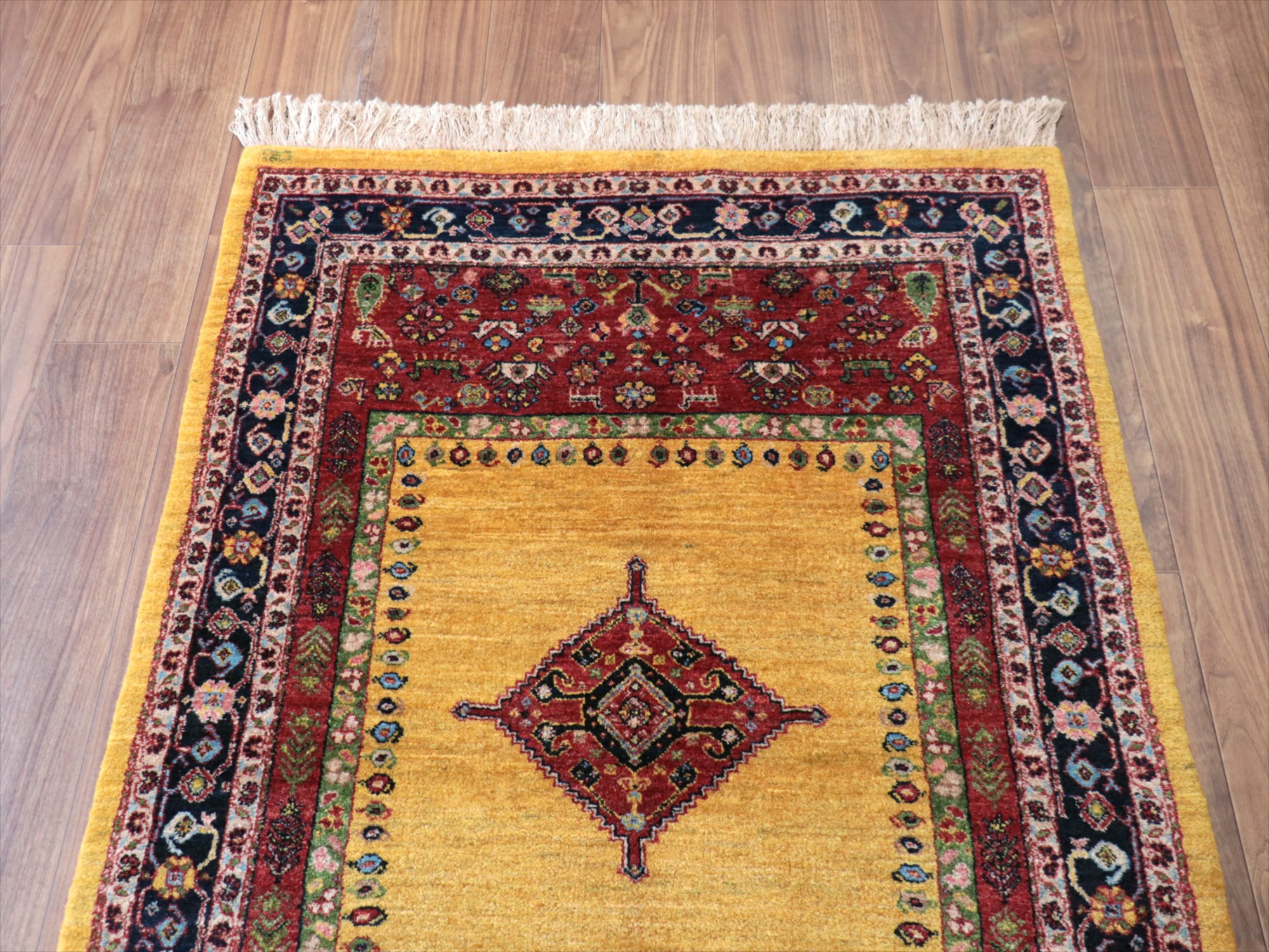 Key:Gabbeh, Tribal Rug, Hand knotted, wool, Natural dye, Shiraz, Fars, Quashkai, カシュカイ族, 伝統柄, クラシック, アンティークラグ, ヴィンテージラグ, トライバルラグ, ギャッベ, ギャベ, 細かい, ラグ, 手織り絨毯, 部族絨毯, ペルシャじゅうたん, 玄関マット, 廊下, ベッドサイド, ウール100%, イエロー, 黄色, 東京、中野区,ガラタバザール