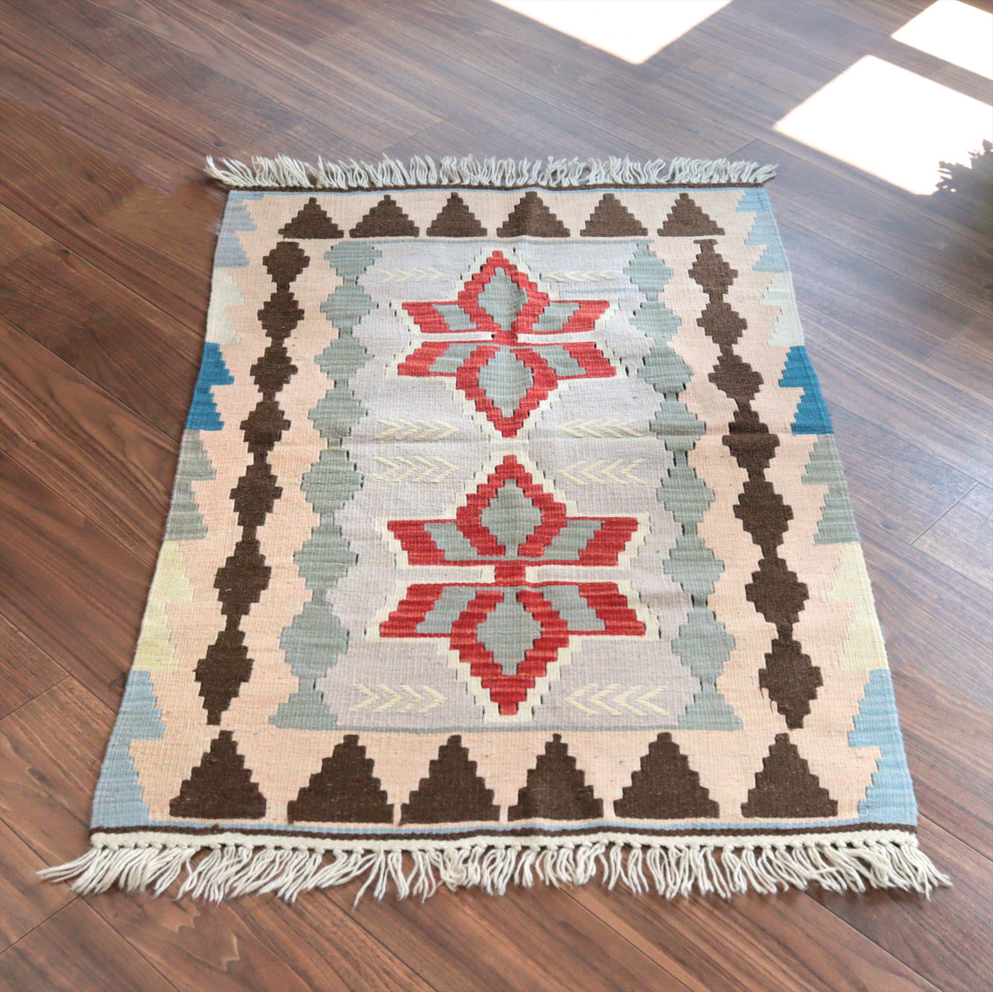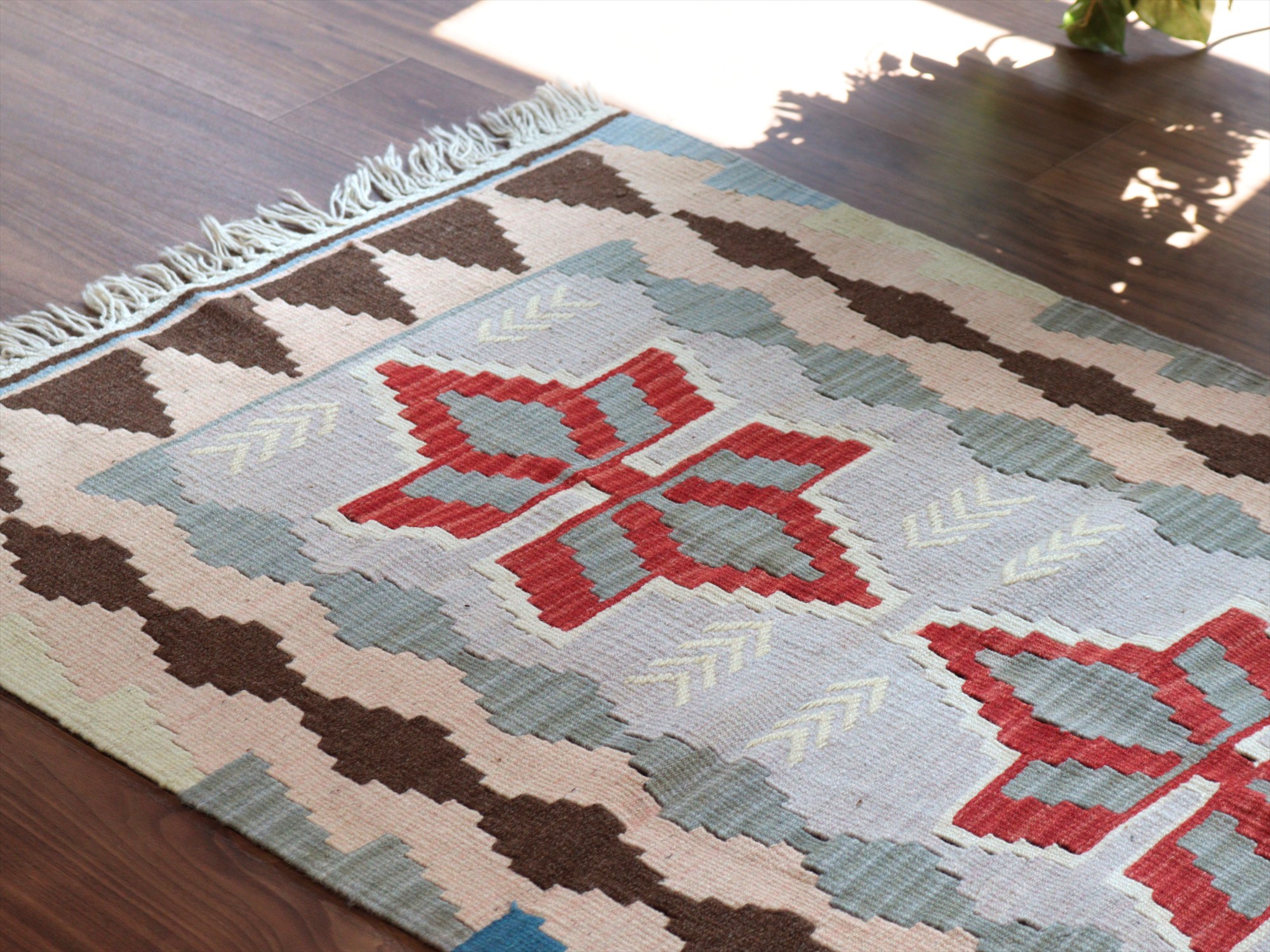 カイセリ産手織りキリム119×79cm パステルカラー トルコの手織りラグ