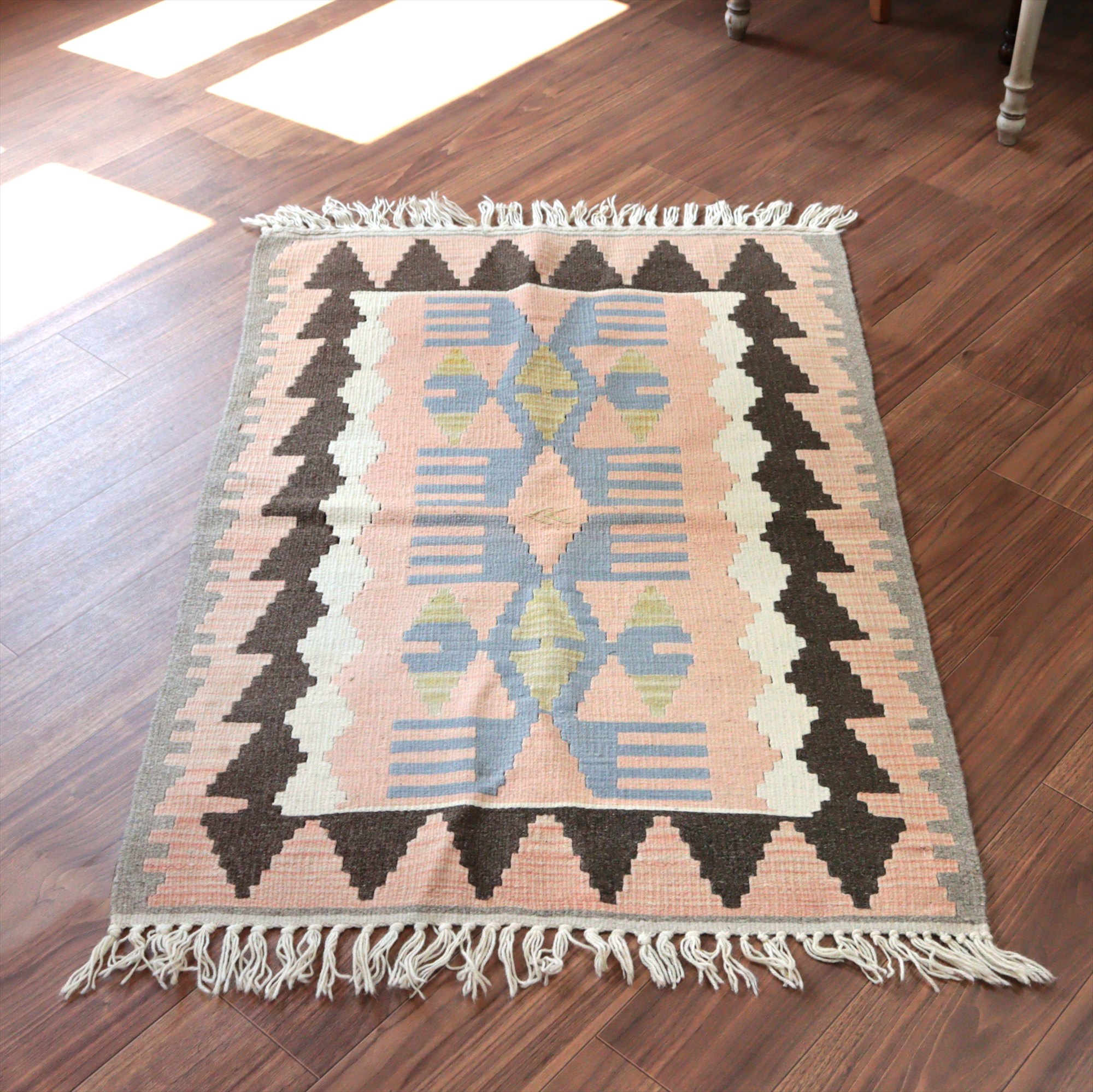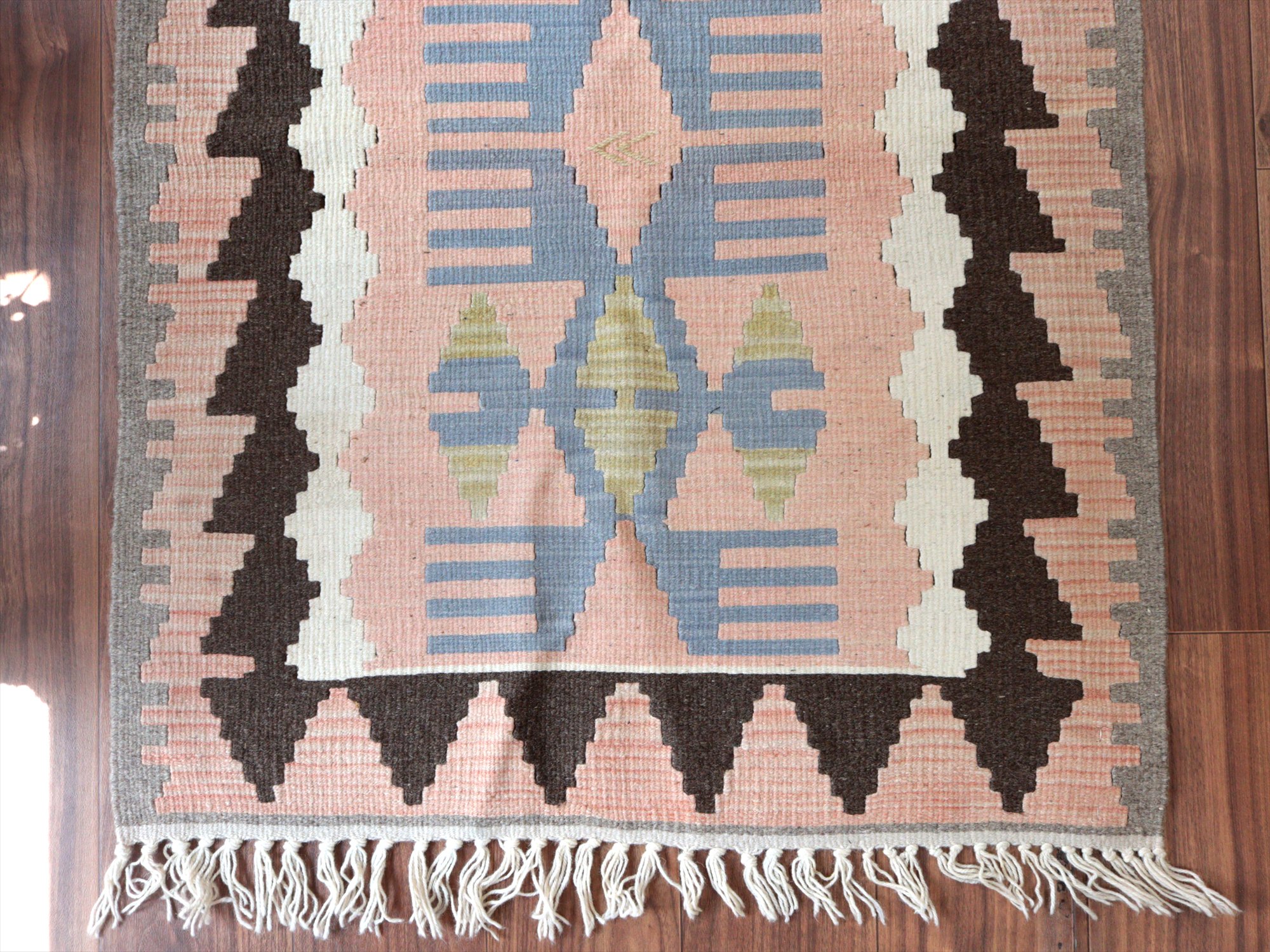 - カイセリ産手織りキリム121×82cm パステルカラー トルコの手織りラグ
