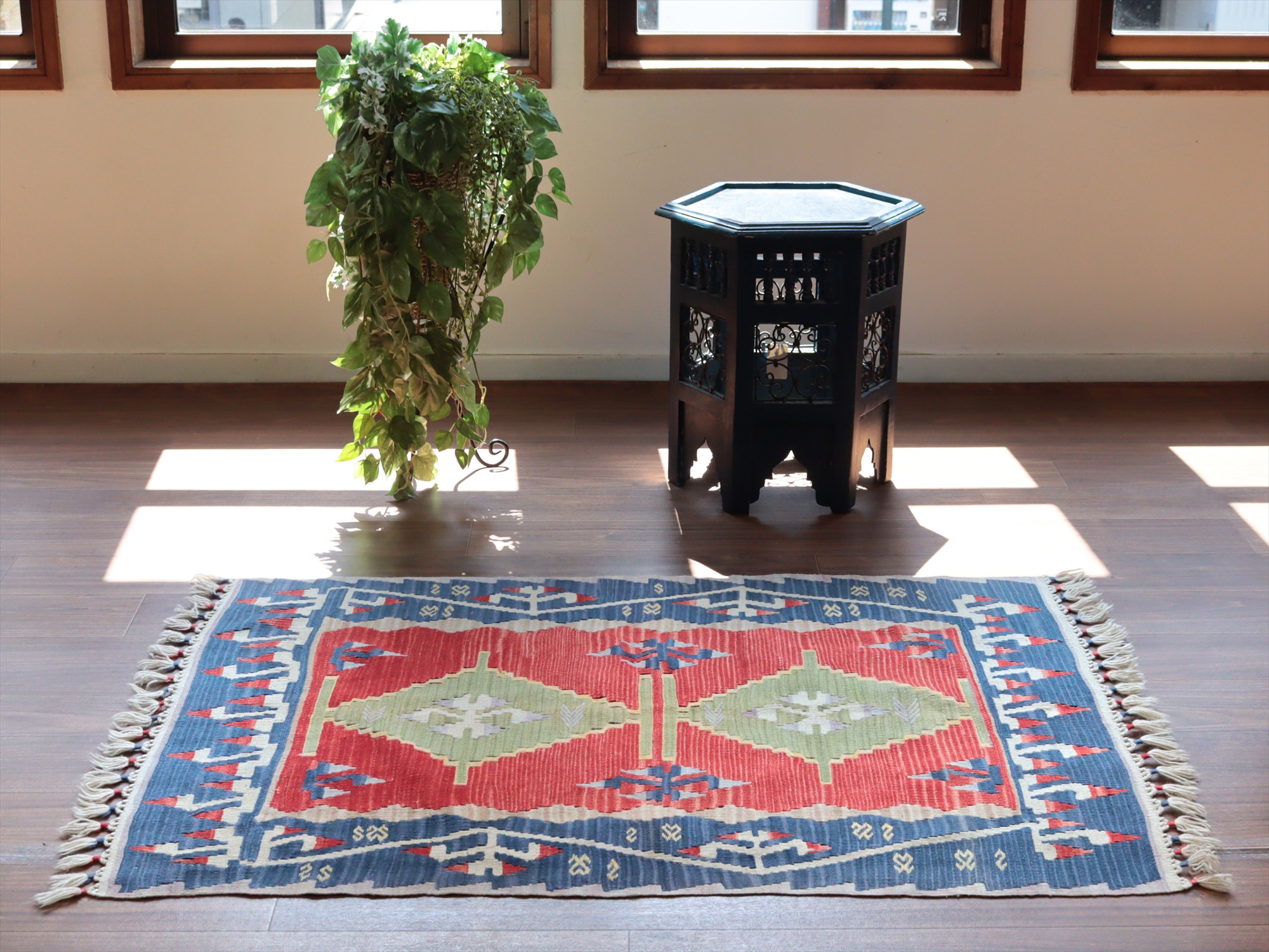 - カイセリ産手織りキリム125×91cm レッド&ブルー トルコの手織りラグ
