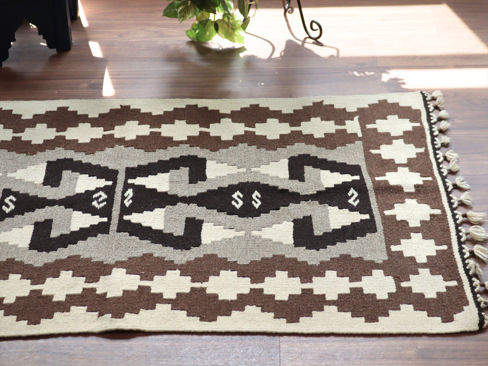 - カイセリ産手織りキリム 雄羊の角125×78cm ナチュラルモノトーン トルコの手織りラグ