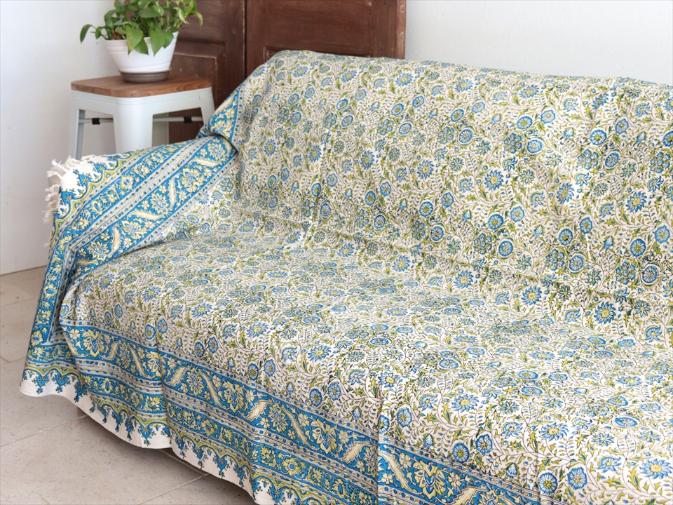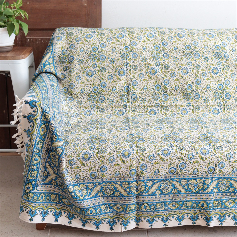 Key:コットン 染色 ブロックプリント 木版 捺染 伝統工芸 ペルシャブルー ペイズリー フリークロス マルチカバー ベッドスプレッド ベッドカバー ソファカバー カーテン タペストリー ファブリック インテリアファブリック クラフト インテリア ペルシャ ペルセポリス イラン 中東 シルクロード アジアン エスニック