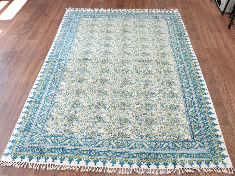 ペルシャ更紗 ガラムカール 234×155cm ブルー/グリーン フラワー柄 テーブルクロス ソファカバー