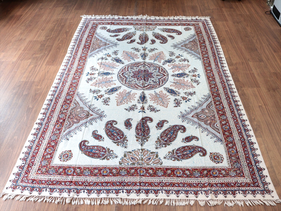 ペルシャ更紗 ガラムカール 232×151cm アンバー系 ペイズリー柄 テーブルクロス ソファカバー