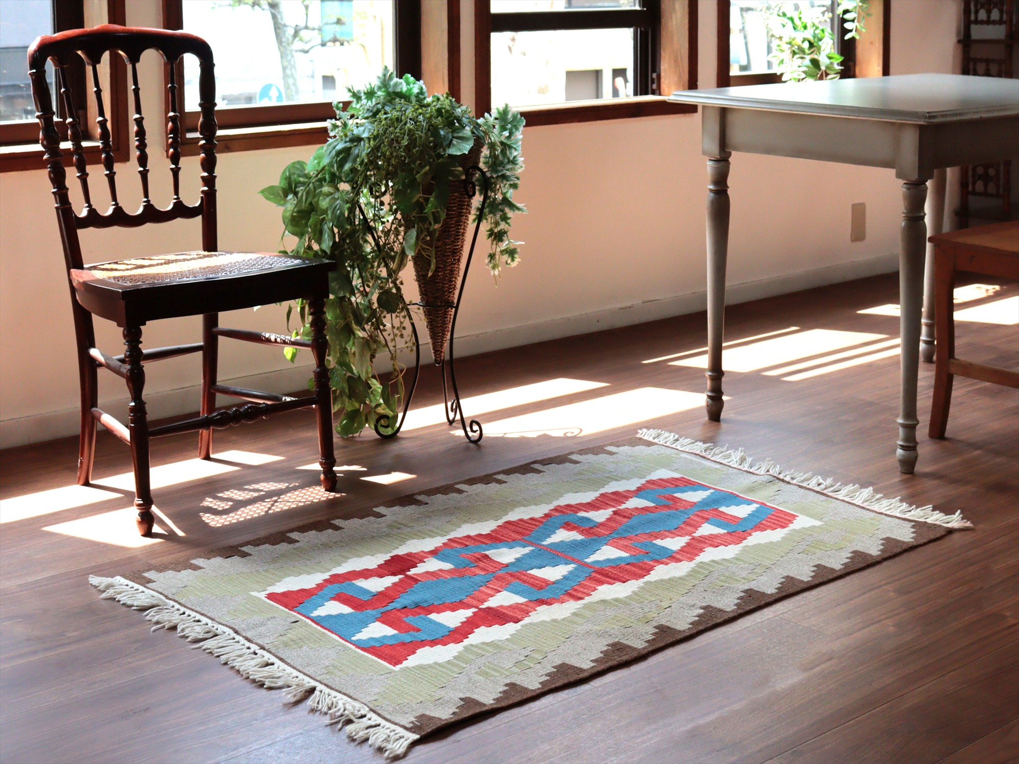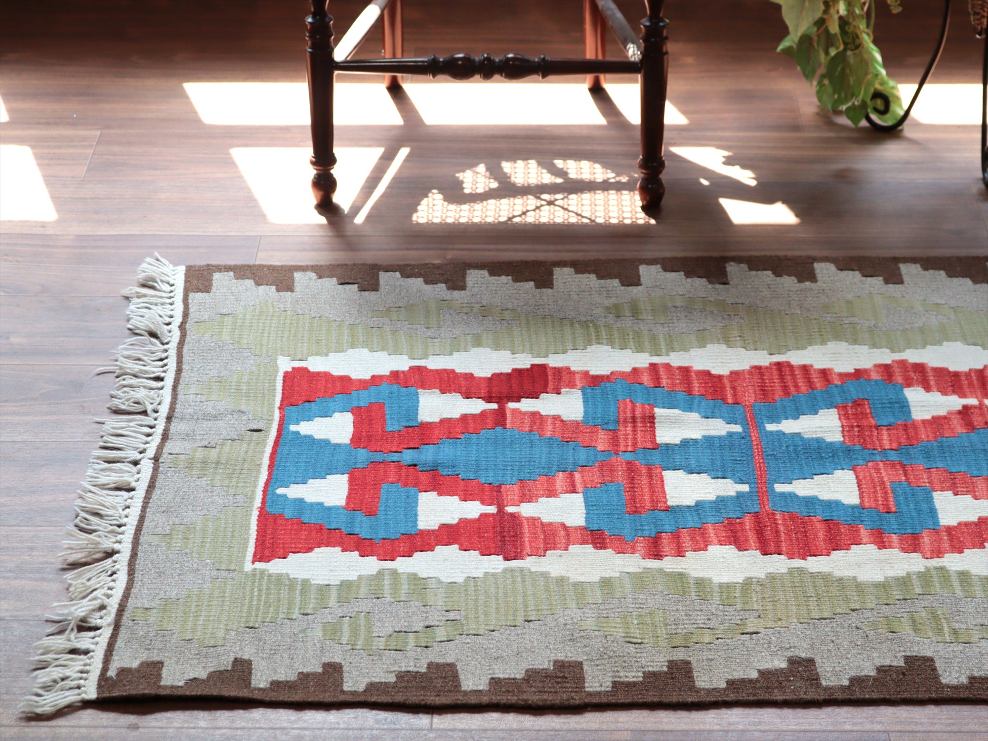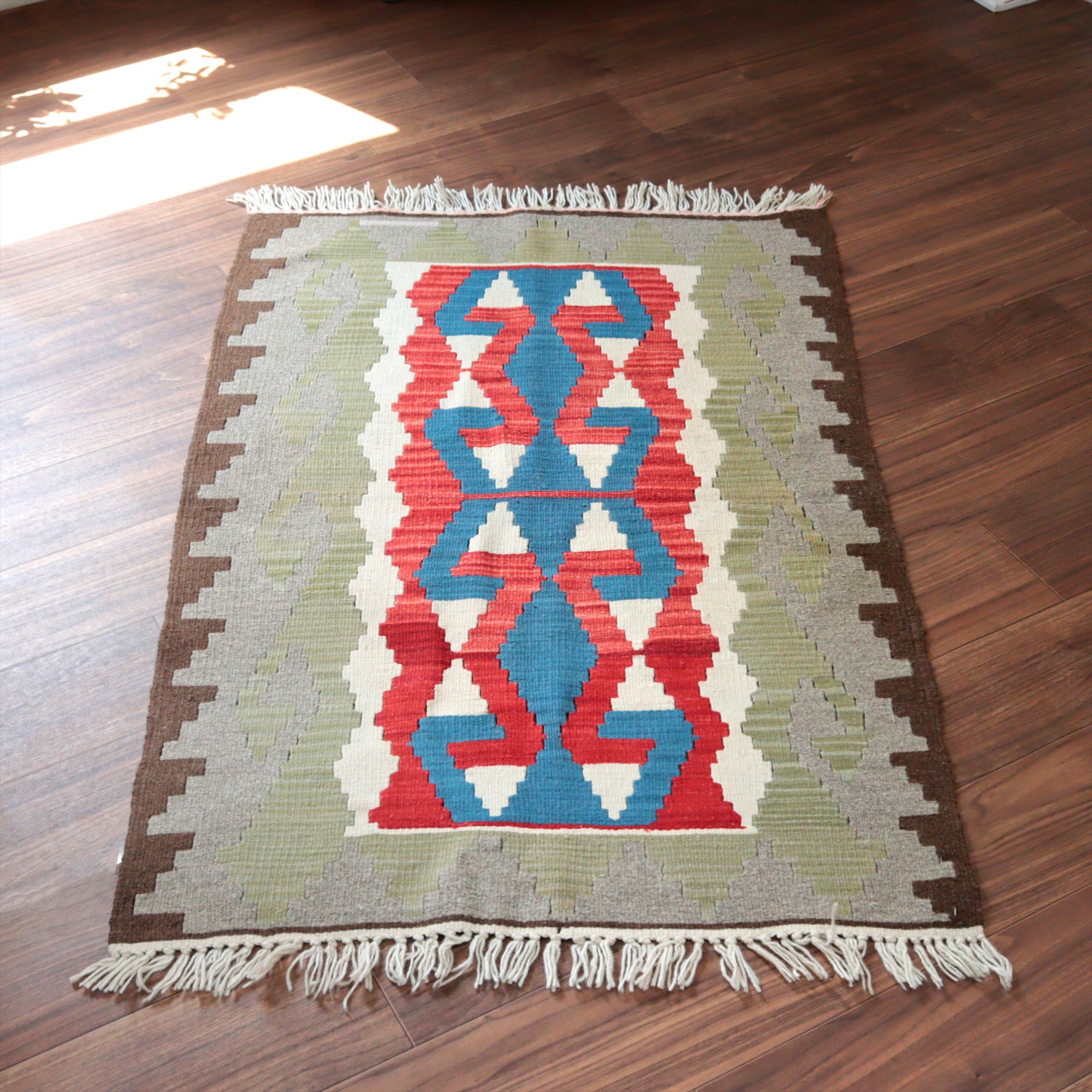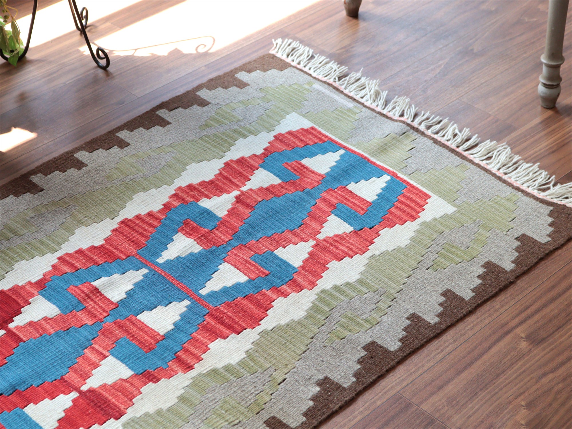 - カイセリ産手織りキリム122×80cm 雄羊の角 トルコの手織りラグ