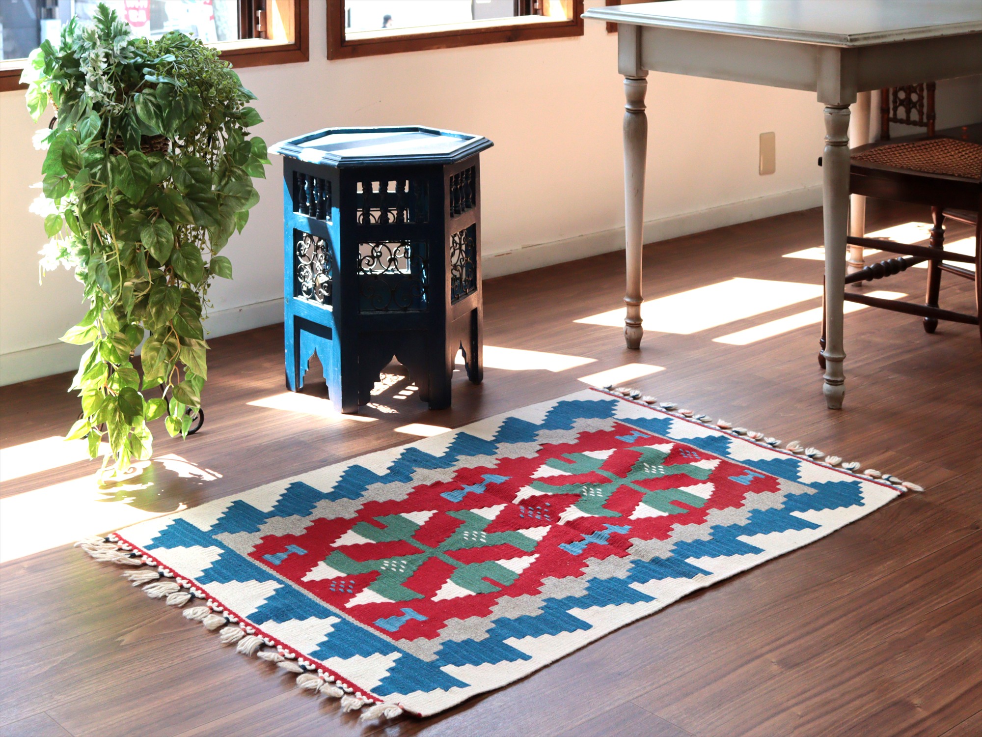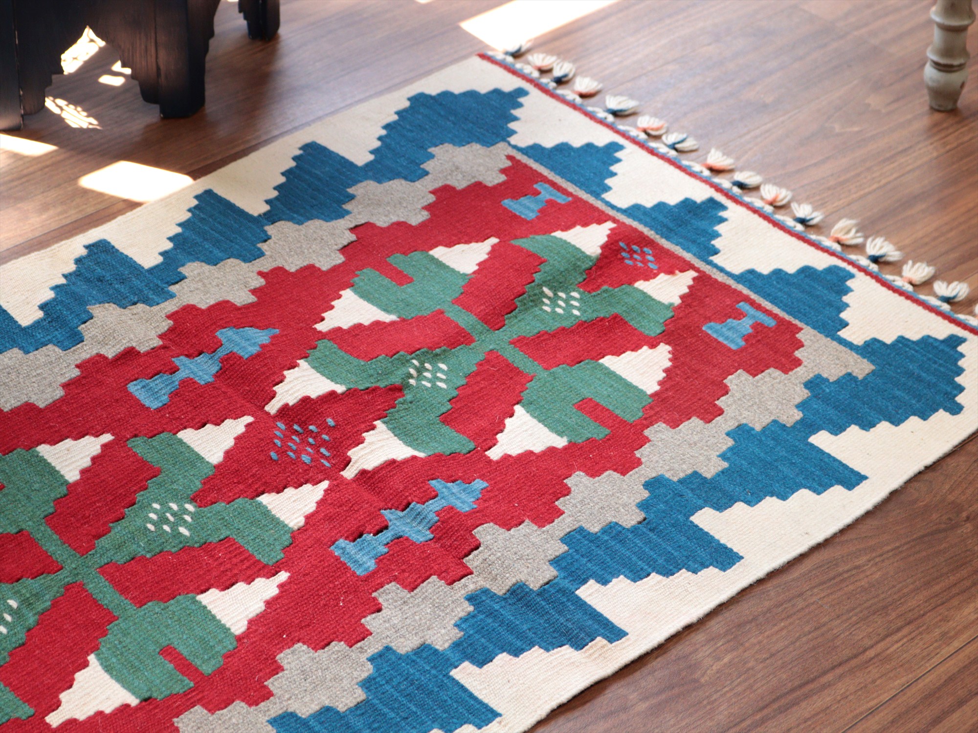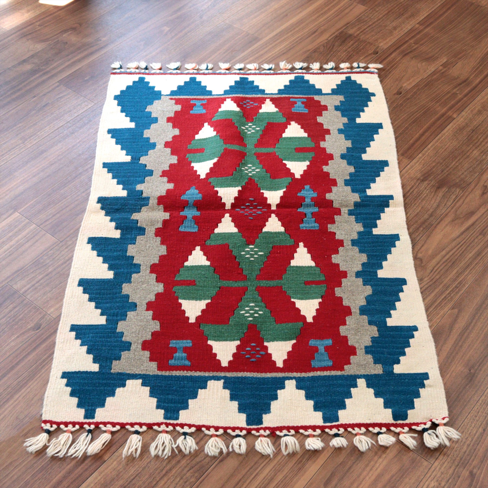 カイセリ産手織りキリム110×75cm レッド&ブルー トルコの手織りラグ