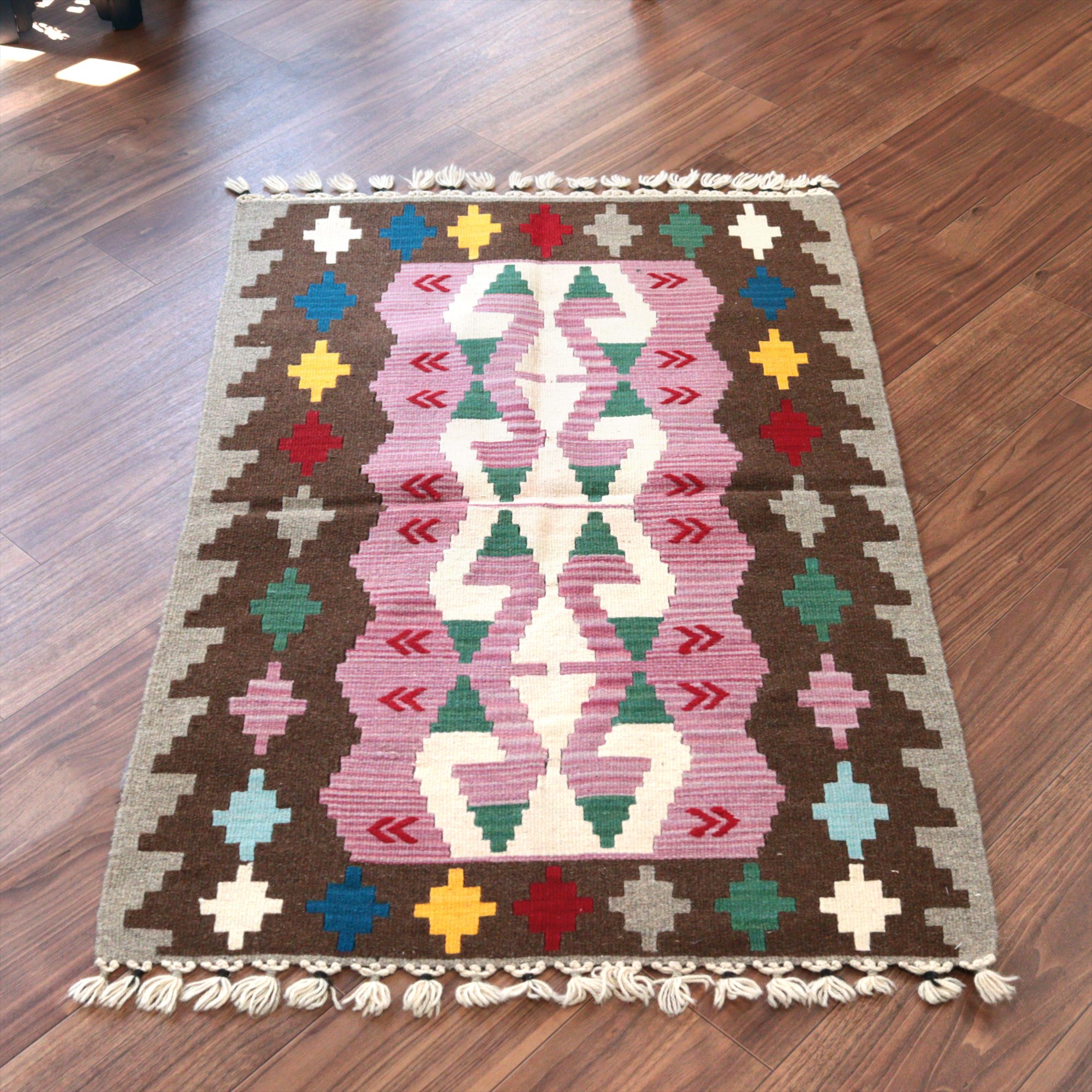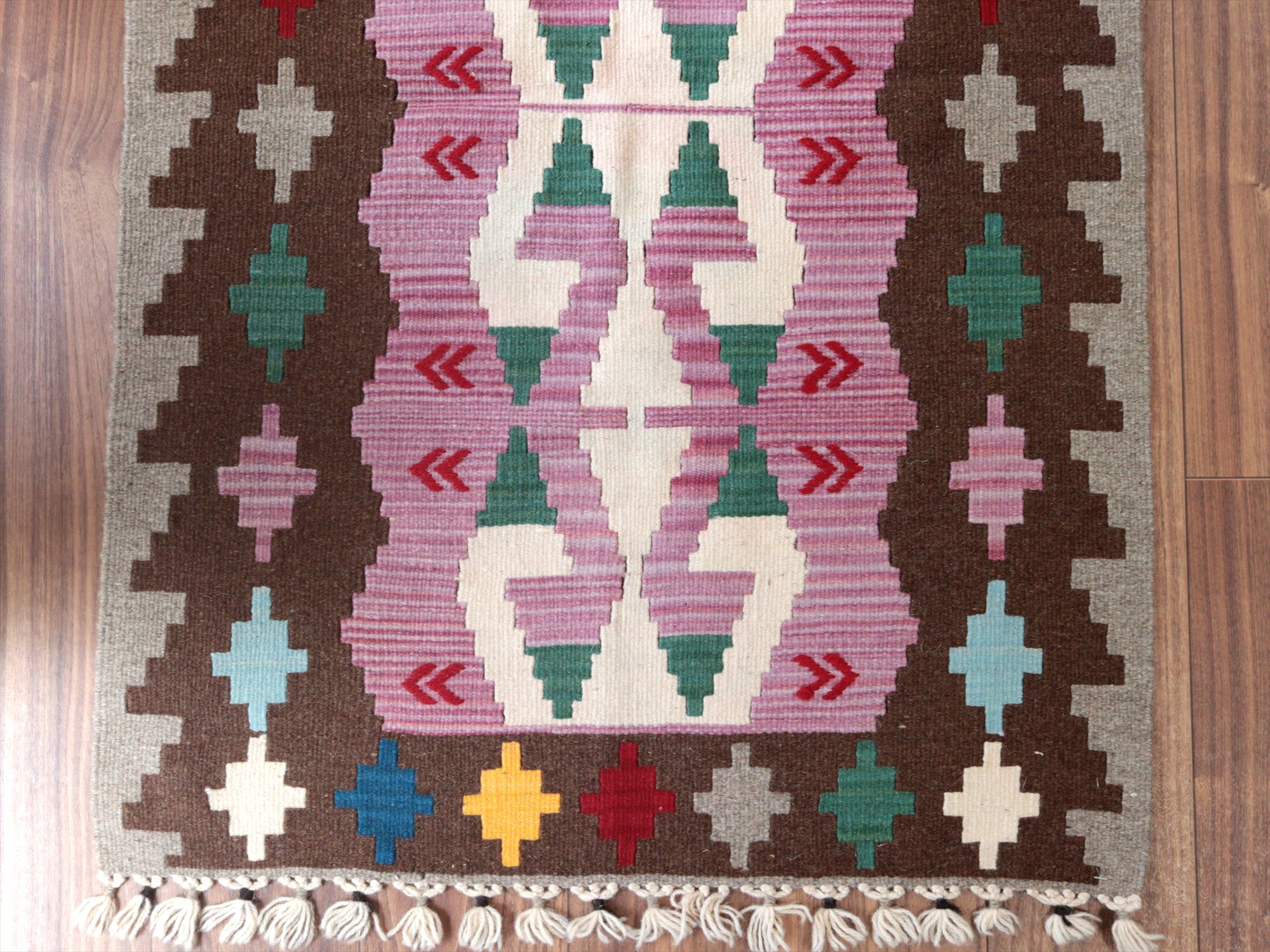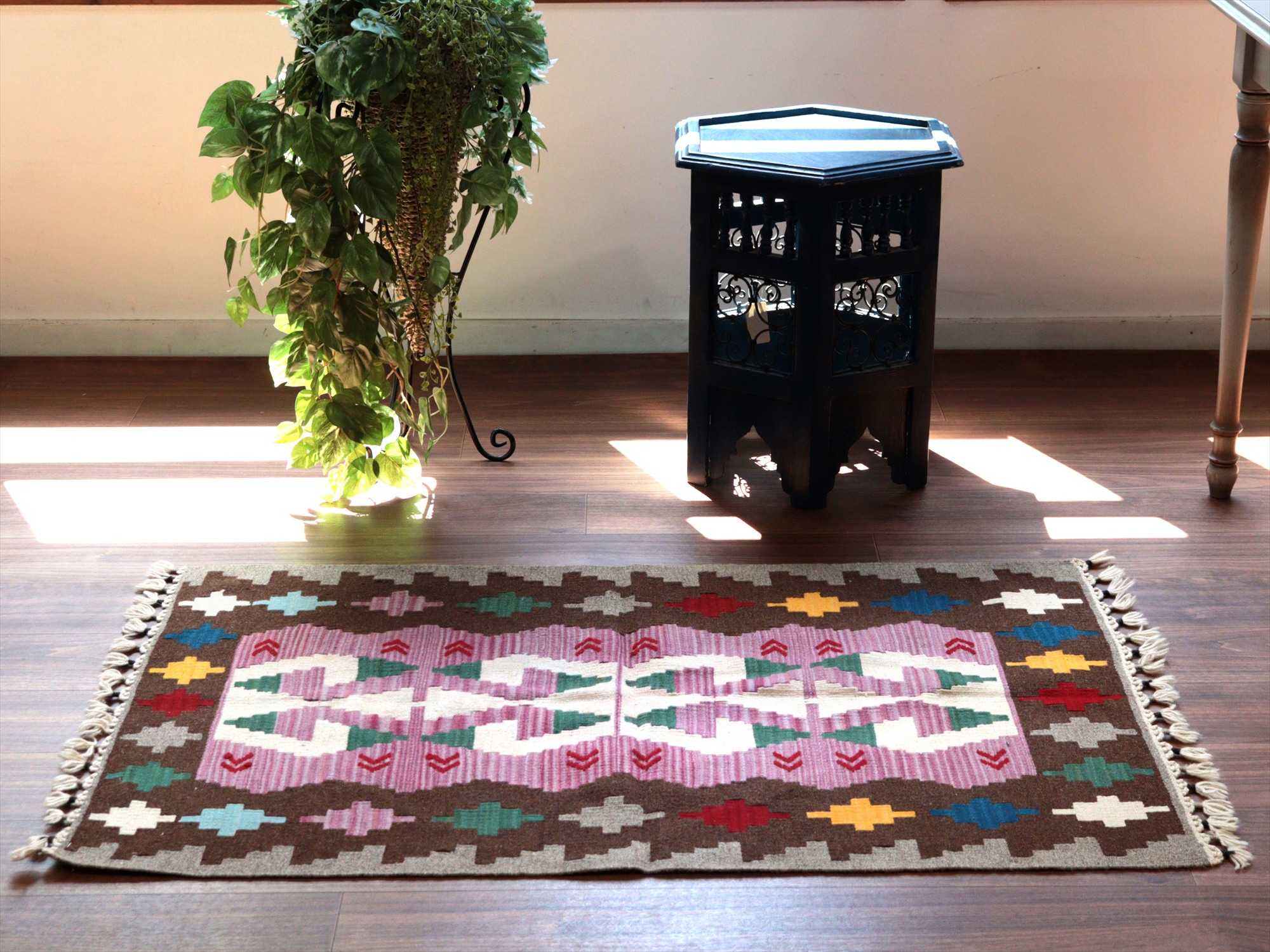 カイセリ産手織りキリム116×78cm パープル&ブラウン トルコの手織りラグ
