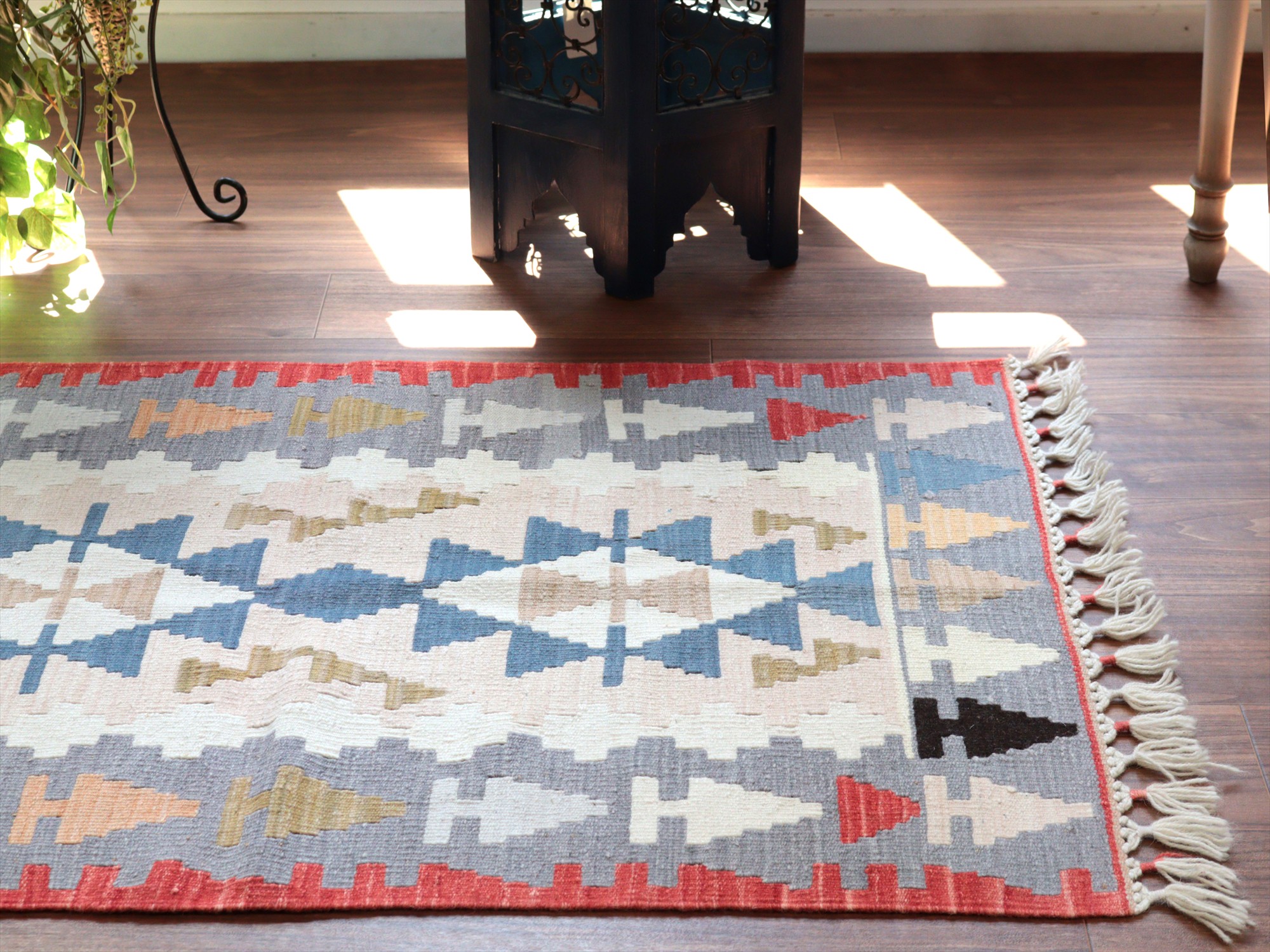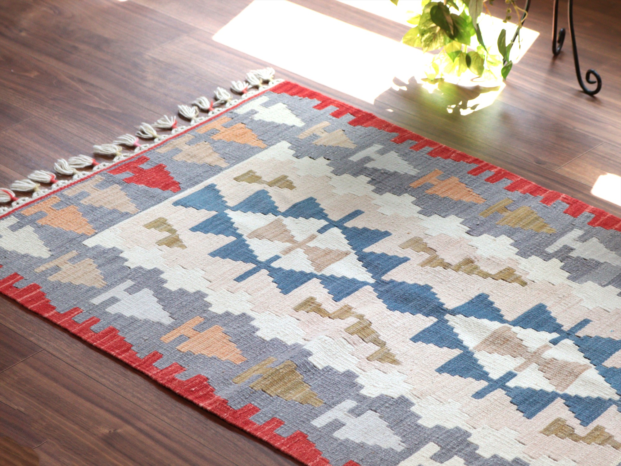 - カイセリ産手織りキリム124×79cm トルコの手織りラグ
