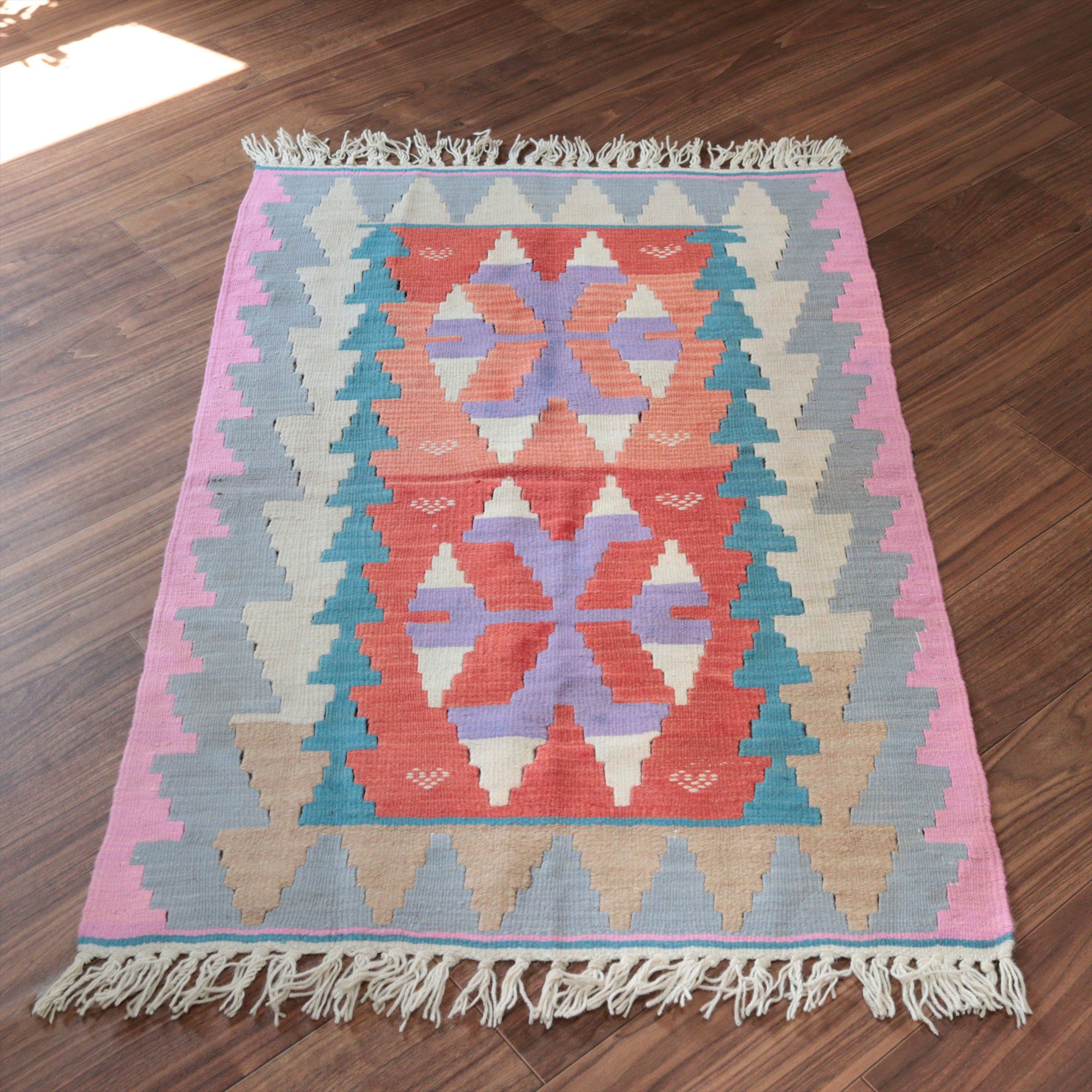 - カイセリ産手織りキリム114×75cm パステルカラー トルコの手織りラグ