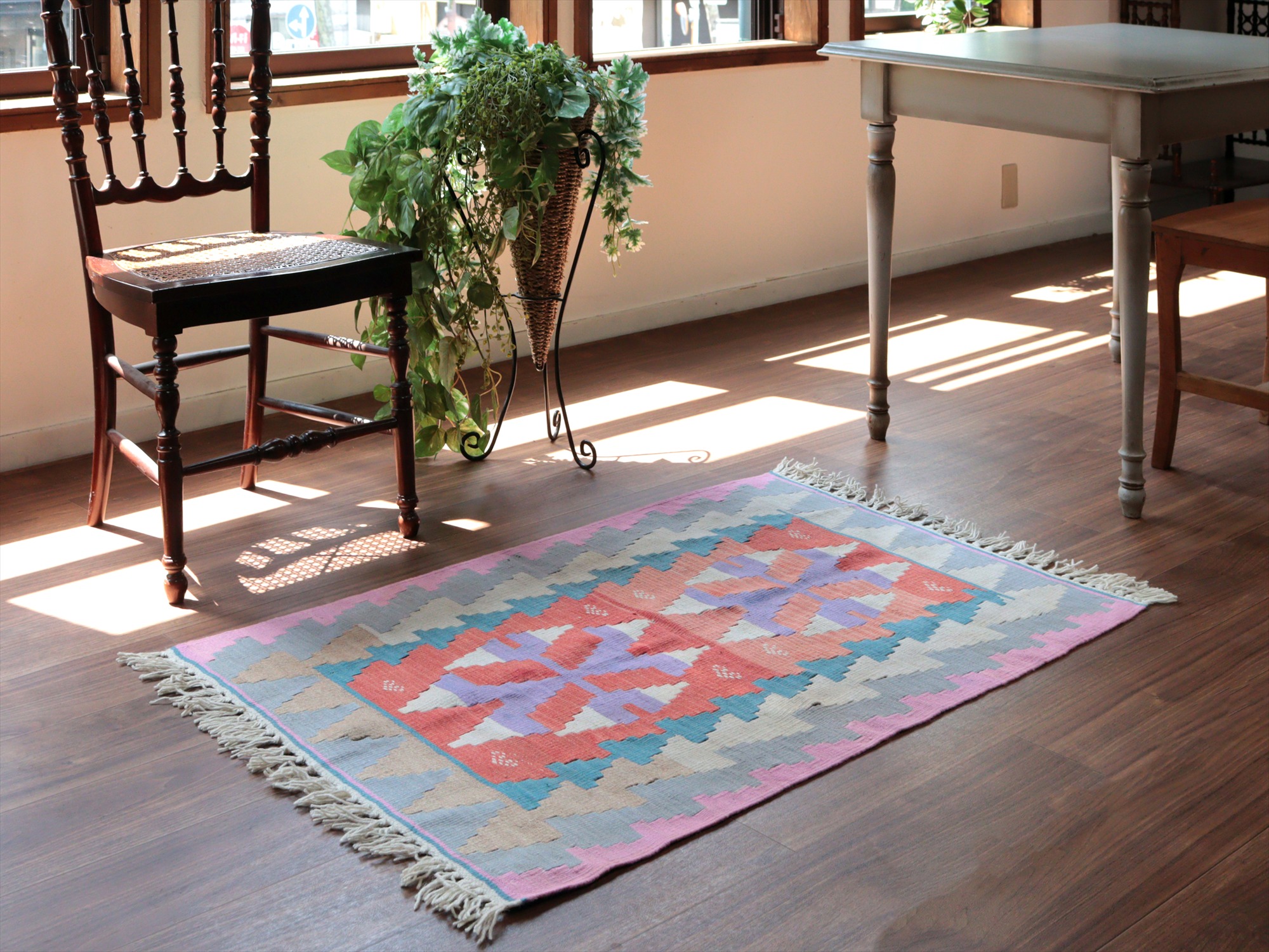 key:Turkish Rug, Turkish Carpet, Handmade, Hand knotted, wool rug, Trial rug, BOHO, BO-HO, トルコキリム, 平織り, 民藝, ハンドメイド, クラフト, 手織り, 一点もの, 現品販売, ウール, ガラタバザール, mapKayseri