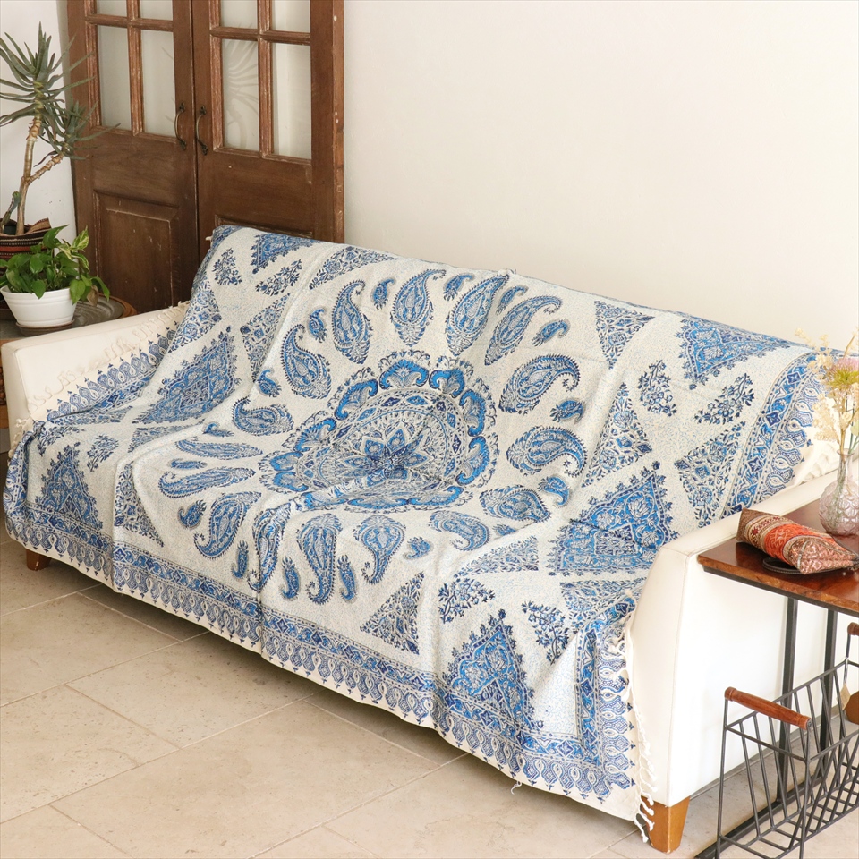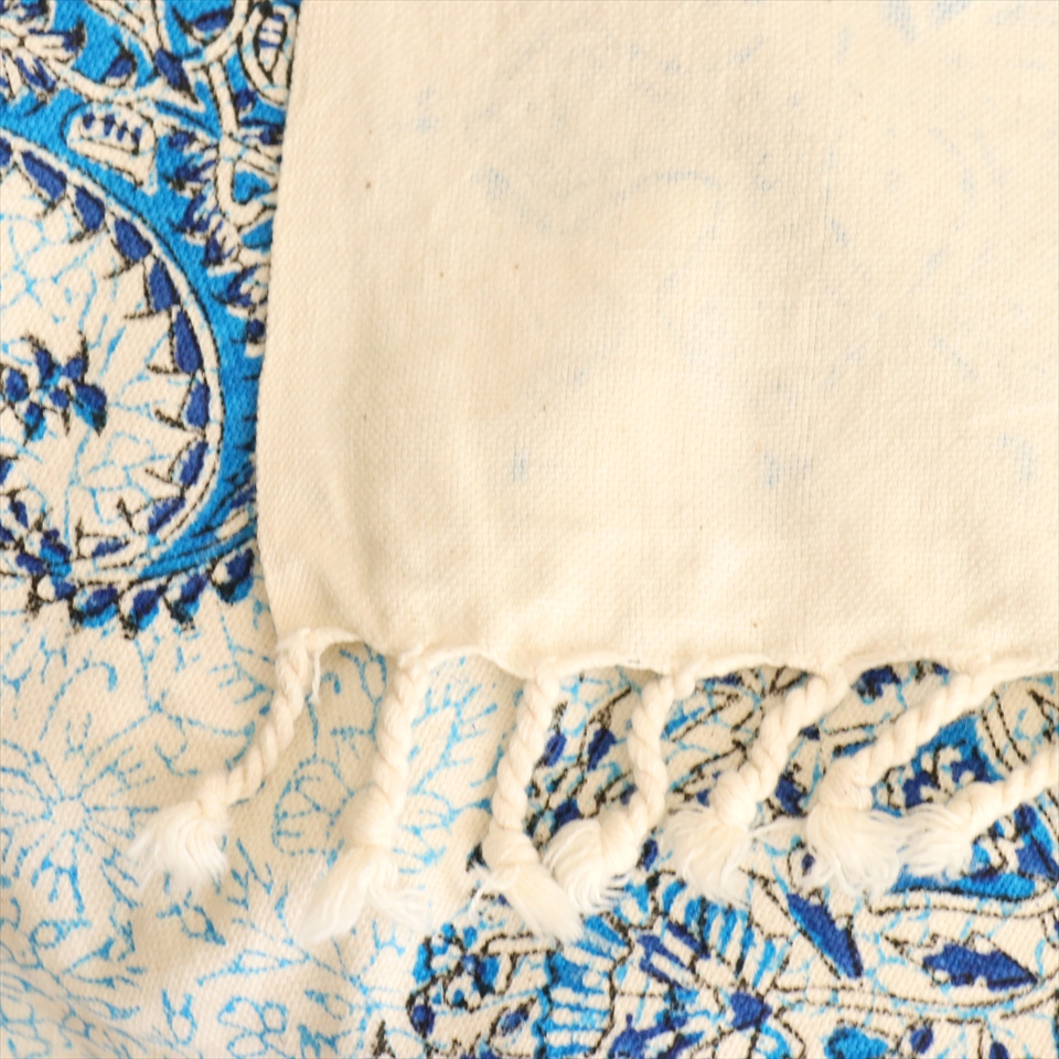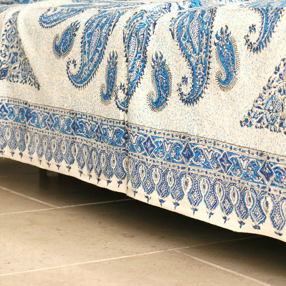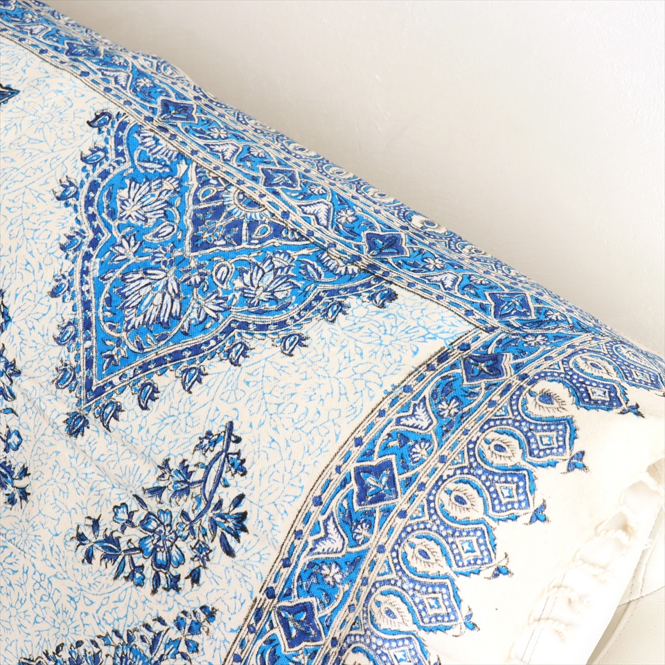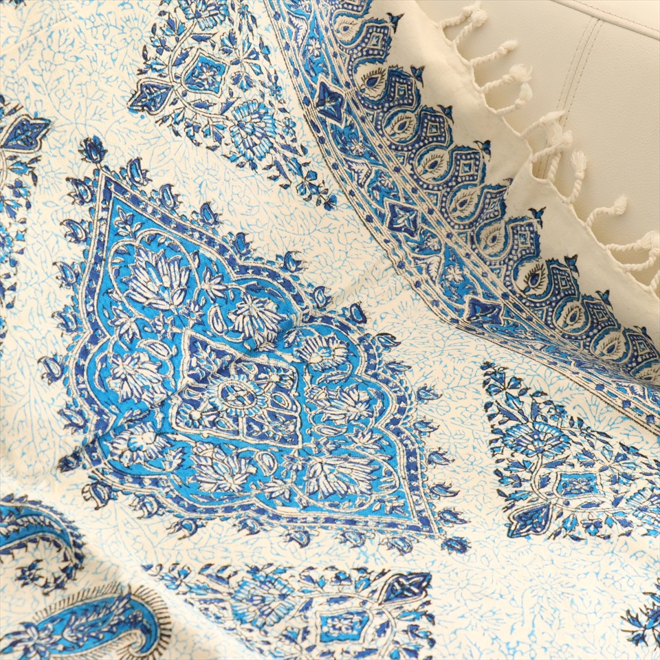 Key:コットン 染色 ブロックプリント 木版 捺染 伝統工芸 ペルシャブルー ペイズリー フリークロス マルチカバー ベッドスプレッド ベッドカバー ソファカバー カーテン タペストリー ファブリック インテリアファブリック クラフト インテリア ペルシャ ペルセポリス イラン 中東 シルクロード アジアン エスニック 200cmサイズ