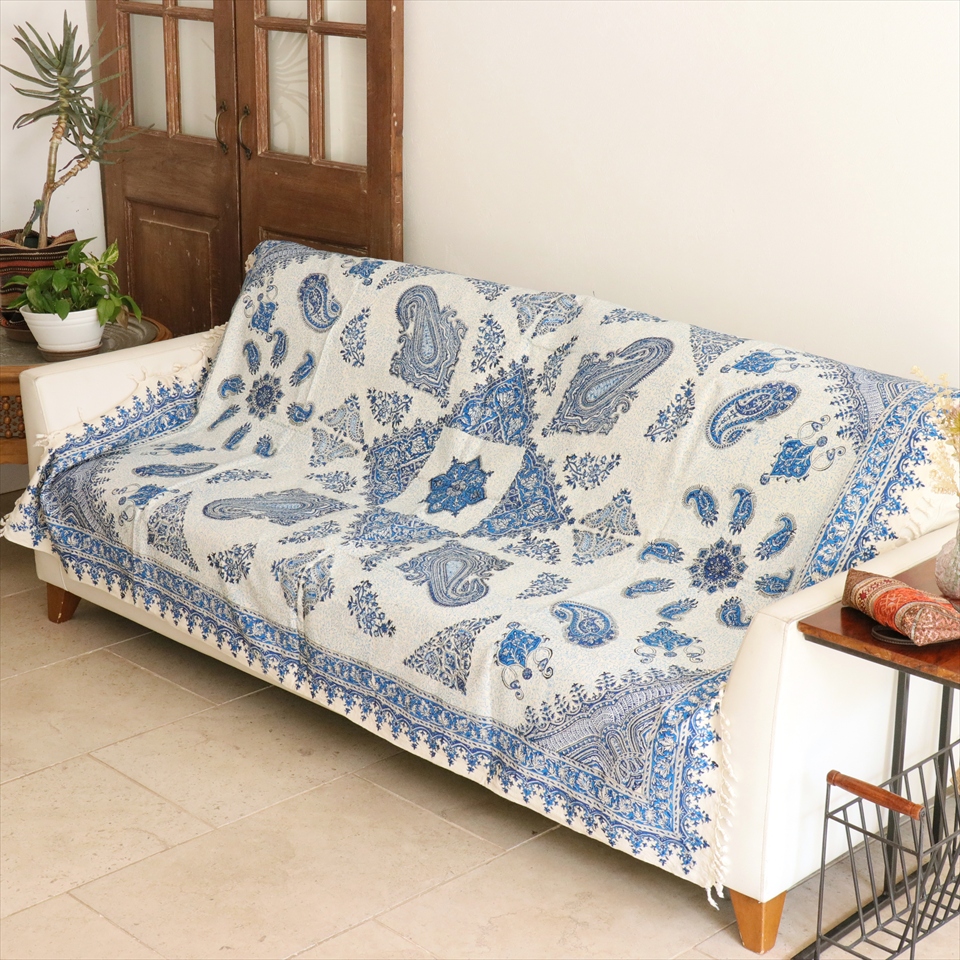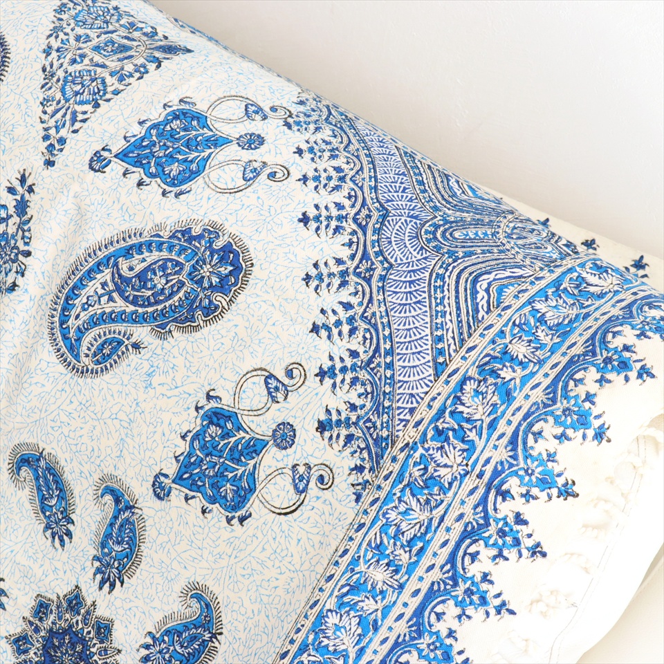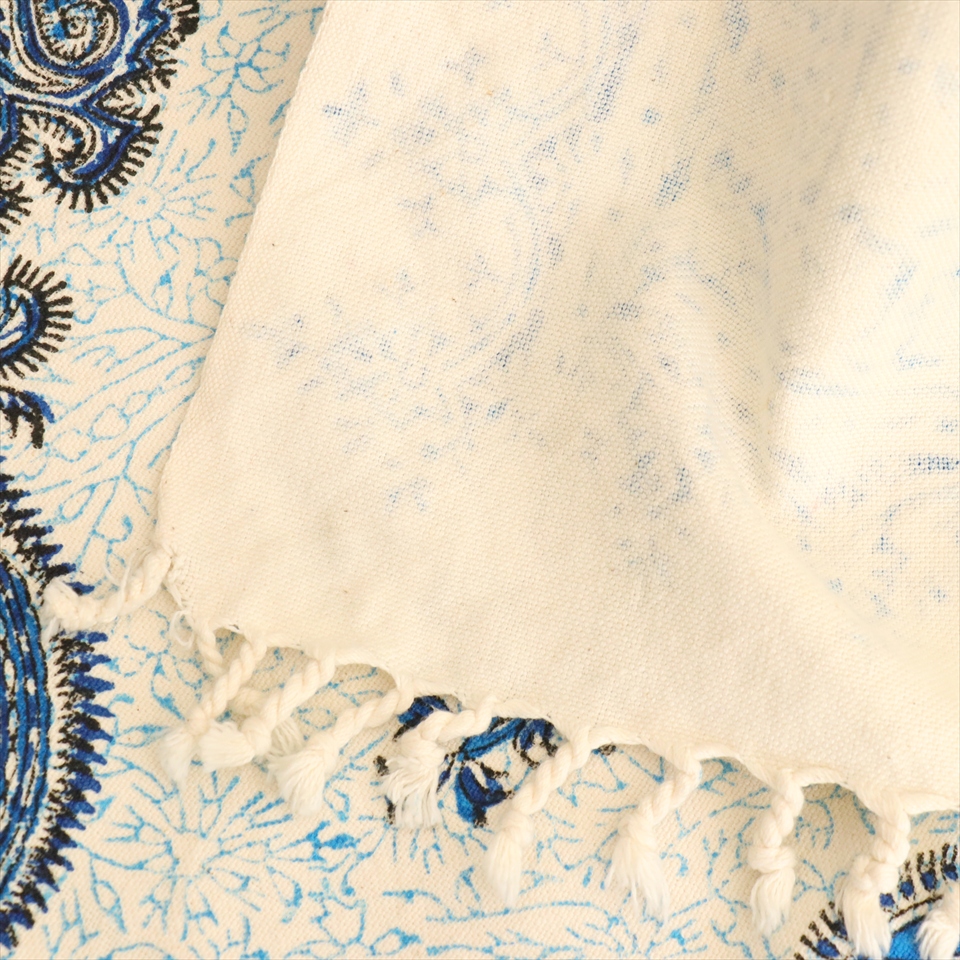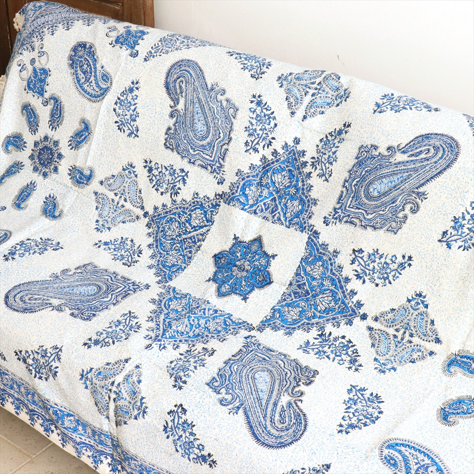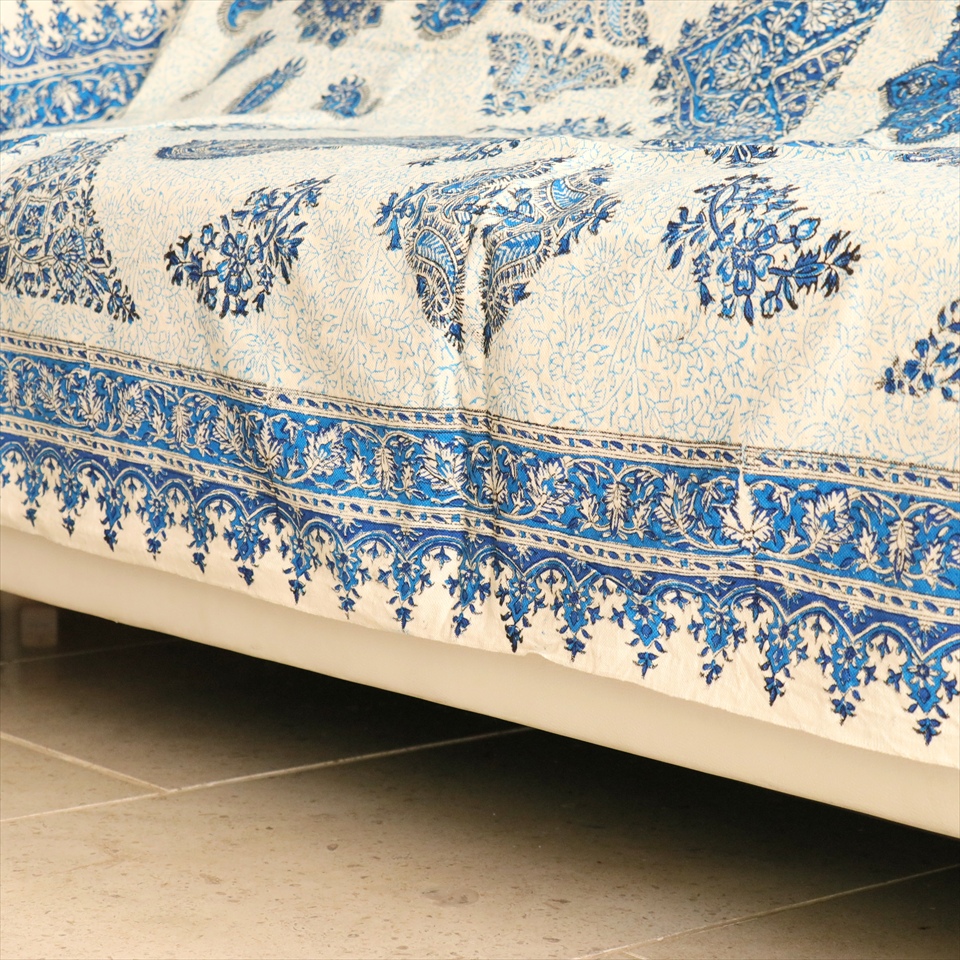 Key:コットン 染色 ブロックプリント 木版 捺染 伝統工芸 ペルシャブルー ペイズリー フリークロス マルチカバー ベッドスプレッド ベッドカバー ソファカバー カーテン タペストリー ファブリック インテリアファブリック クラフト インテリア ペルシャ ペルセポリス イラン 中東 シルクロード アジアン エスニック 200cmサイズ