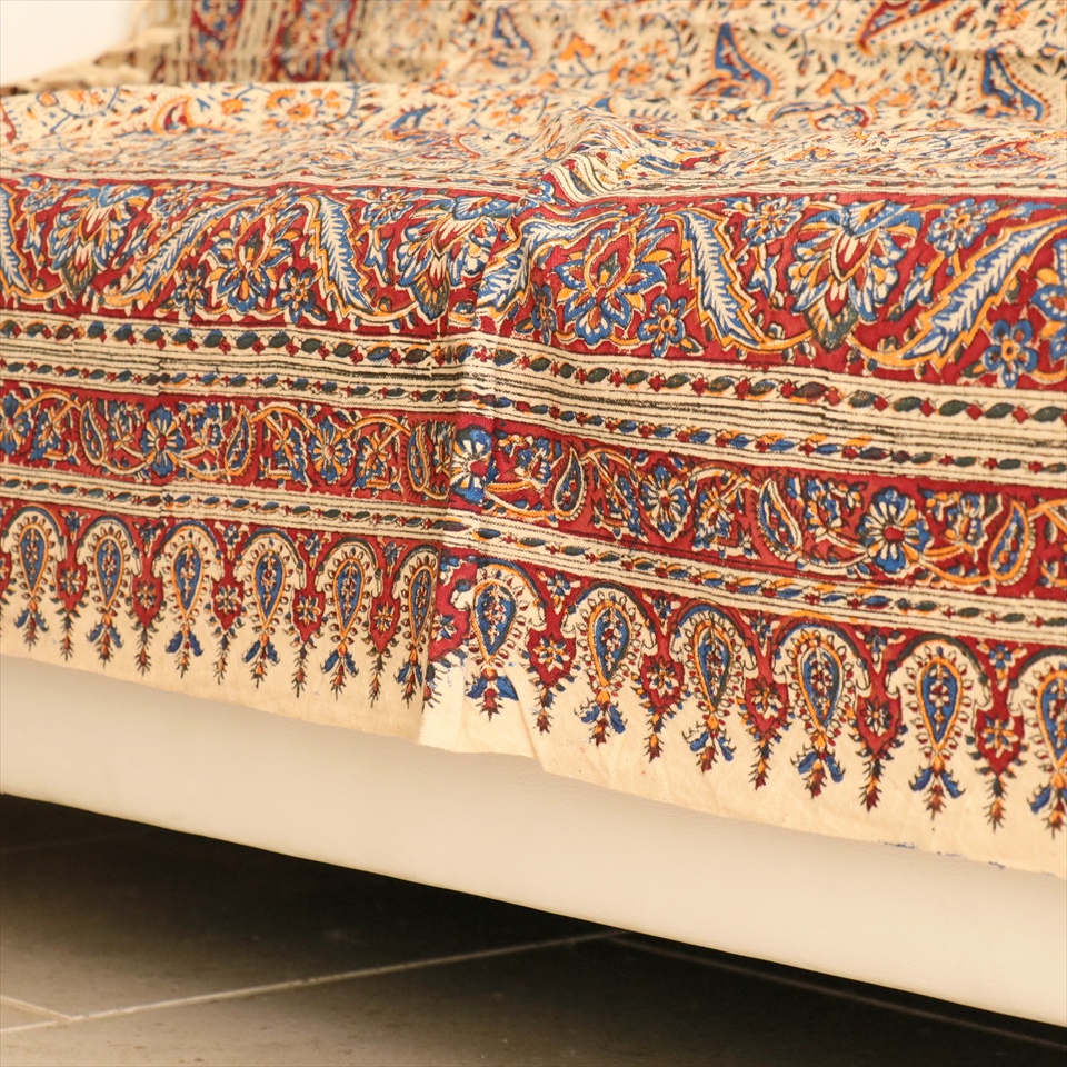 イランの古都イスファハンの工房で、職人さんが一点ずつ丁寧に染めています。生地はしっかりとした厚みのある綿100%の一枚布。