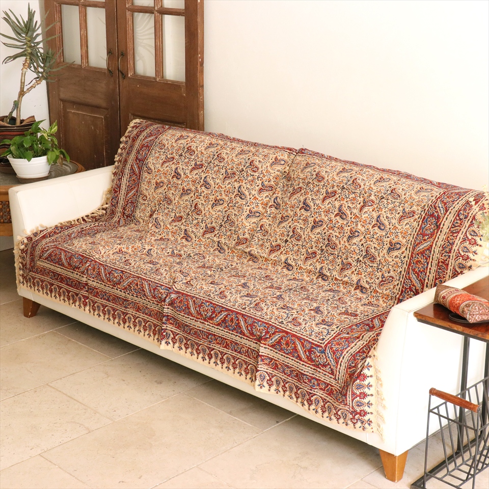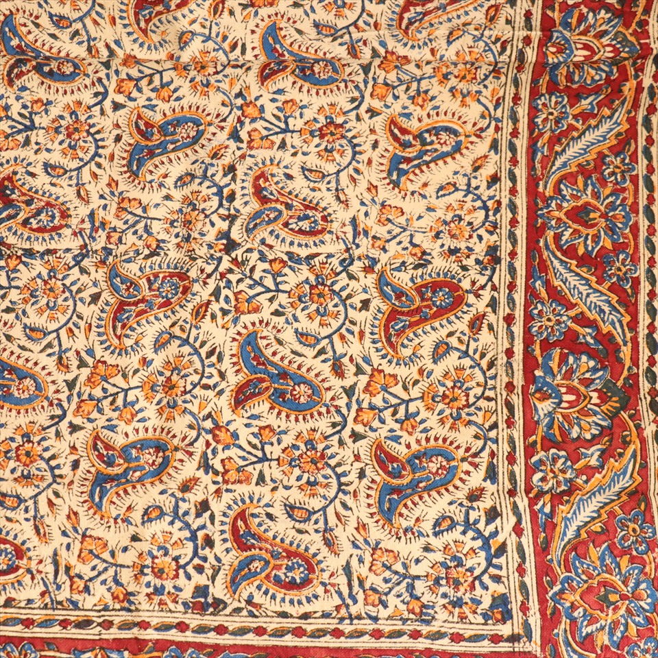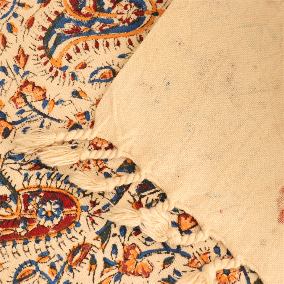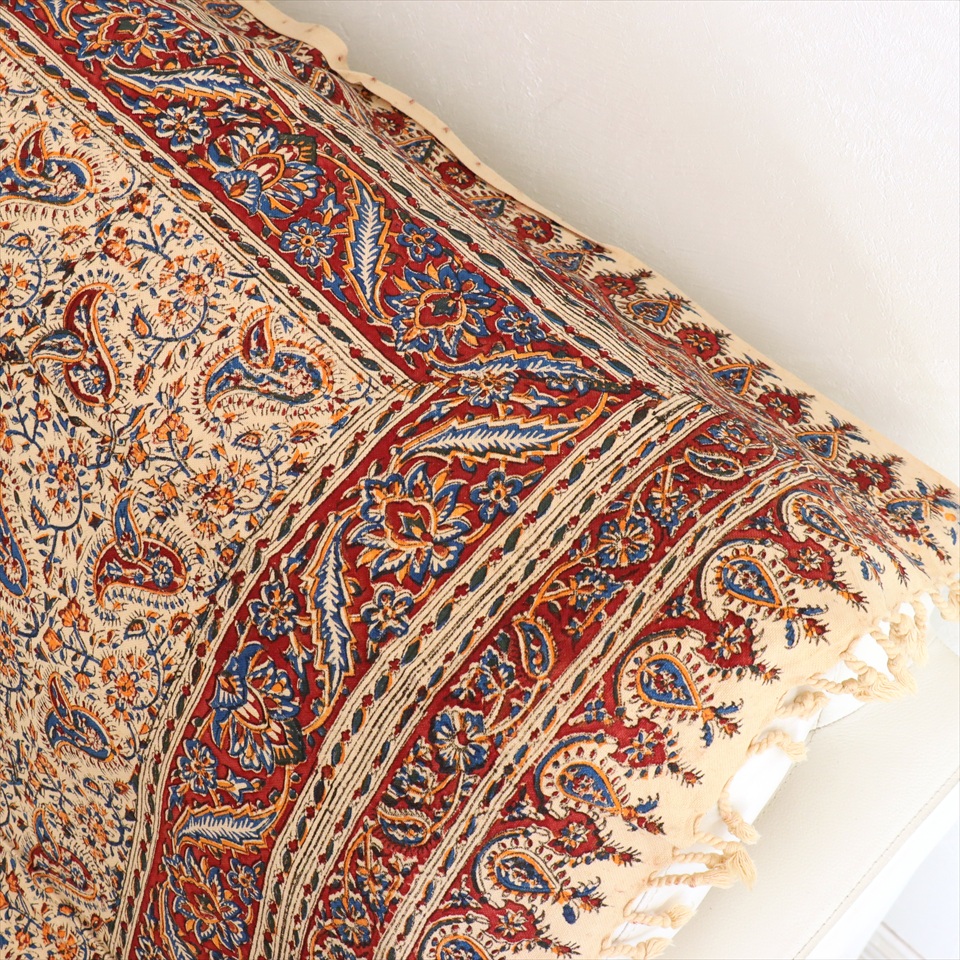 Key:コットン 染色 ブロックプリント 木版 捺染 伝統工芸 ペルシャブルー ペイズリー フリークロス マルチカバー ベッドスプレッド ベッドカバー ソファカバー カーテン タペストリー ファブリック インテリアファブリック クラフト インテリア ペルシャ ペルセポリス イラン 中東 シルクロード アジアン エスニック 200cmサイズ