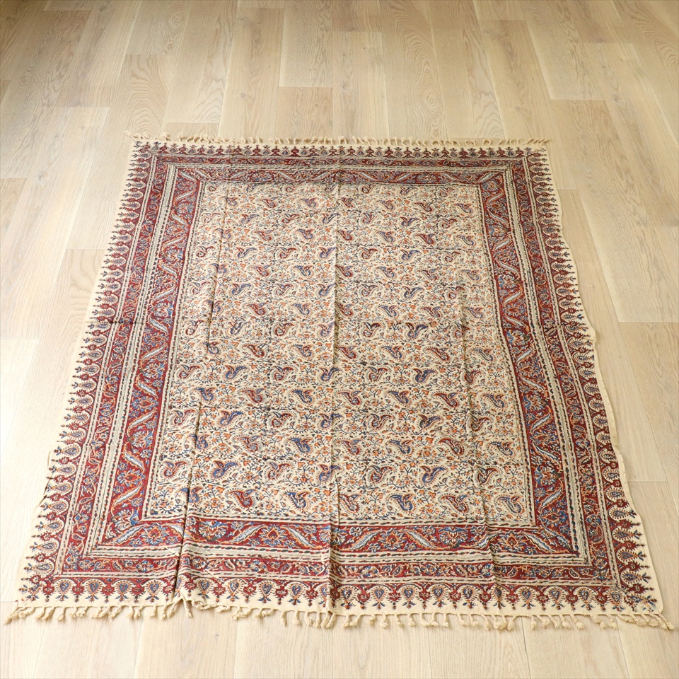 ペルシャ更紗 イラン手染め布 186×125cm アンバー系 フラワー柄 テーブルクロス ソファカバー