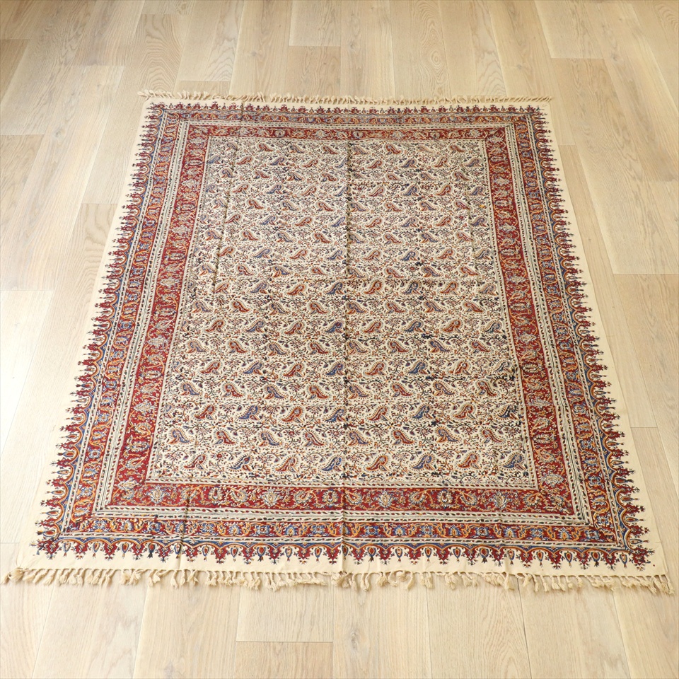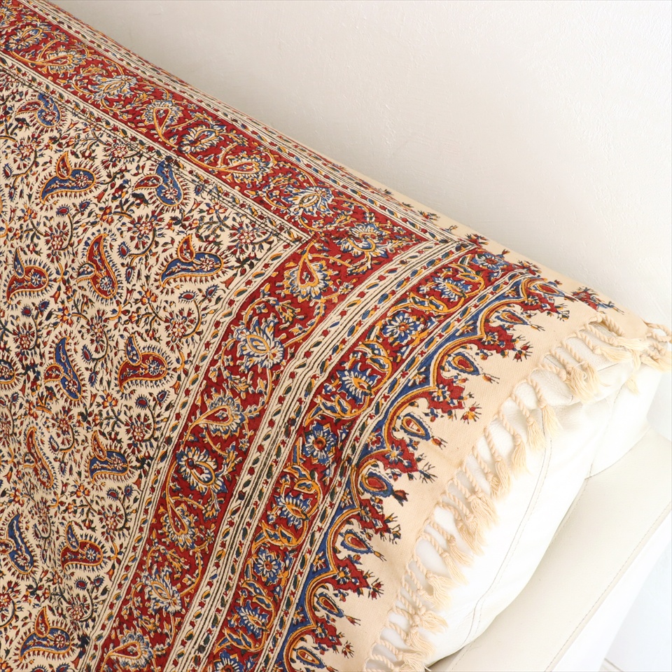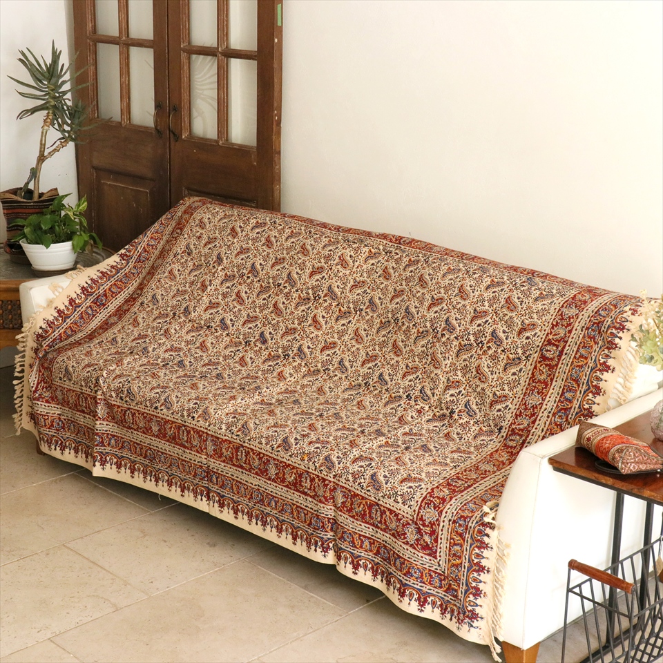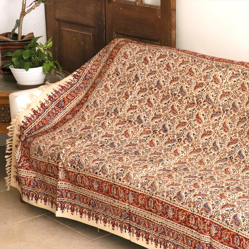 Key:コットン 染色 ブロックプリント 木版 捺染 伝統工芸 ペルシャブルー ペイズリー フリークロス マルチカバー ベッドスプレッド ベッドカバー ソファカバー カーテン タペストリー ファブリック インテリアファブリック クラフト インテリア ペルシャ ペルセポリス イラン 中東 シルクロード アジアン エスニック 200cmサイズ